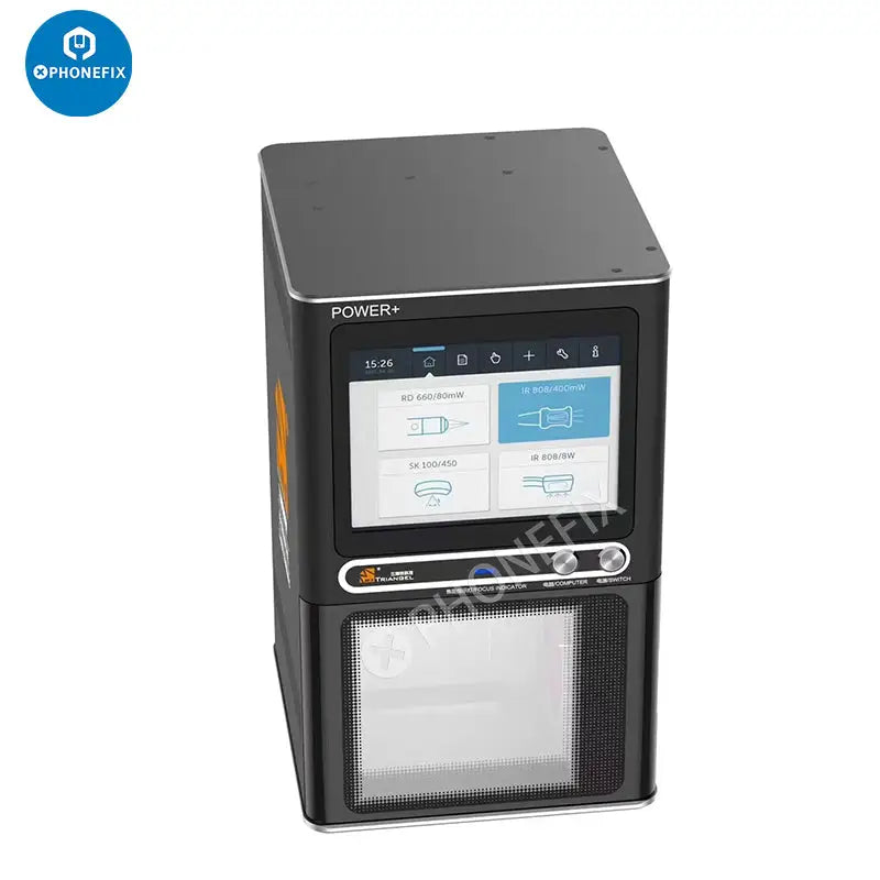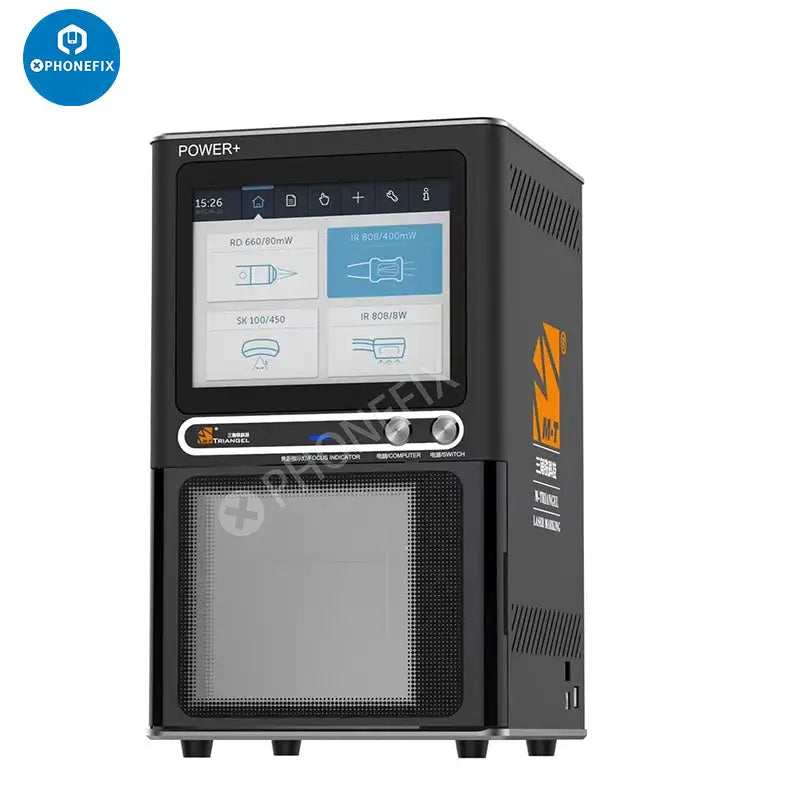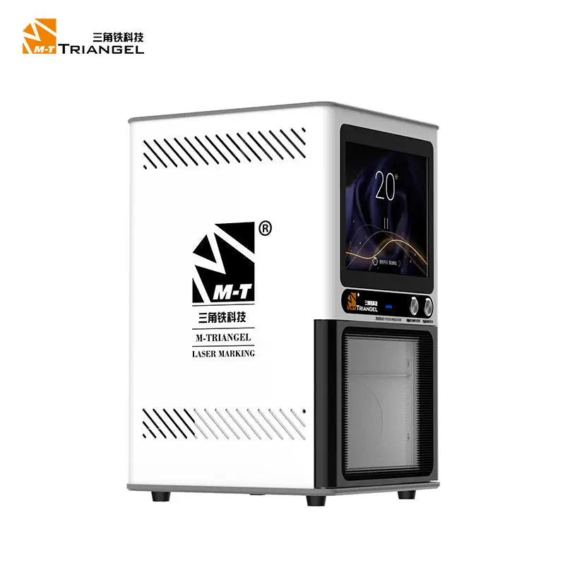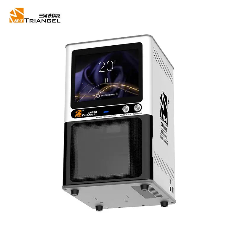 M-Triangel PG Pro/PG Pro+ back glass laser machine with built-in smoke absorber fume extraction system and LCD display screen for iPhone 8-14 Pro Max back housing glass removing. M-Triangel PG Pro 8W laser machine. M-Triangel PG Pro Plus PG POWER+ 20W laser machine. M-Triangel PG Pro/PG POWER+ Auto-focus Engraving Laser Machine for Mobile Phone back housing cover glass separating removal.