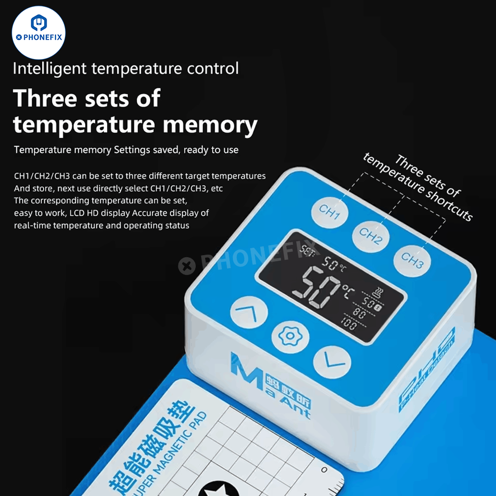MaAnt PDH Series LCD Screen Heating Removal Pad with Super Magnetic Screw Storage Mat for Mobile Phone iPad Laptop and Tablets. MaAnt PDH 15-inch and MaAnt PDH Mini 12-inch screen heating separator with M069 M070 super magnetic pad for screen disassembly, replacement and repair up to 15 inches.