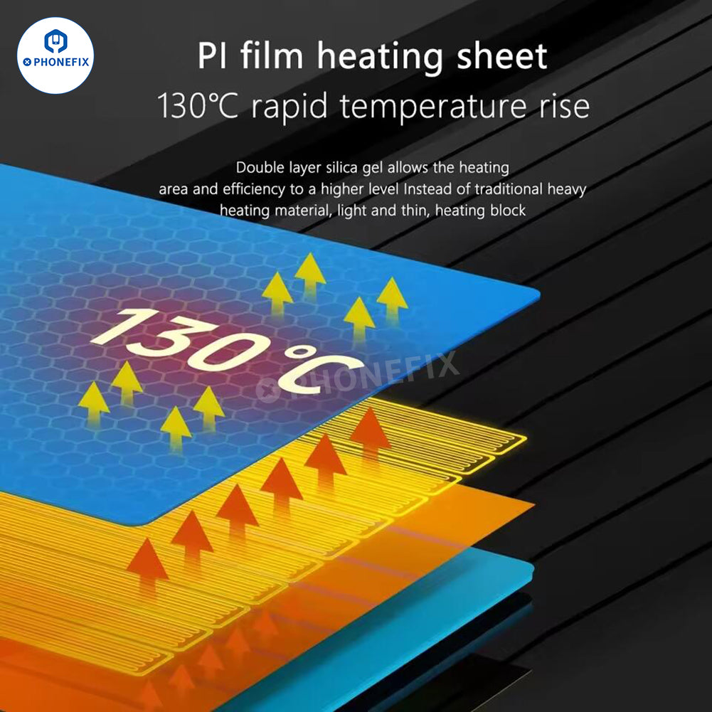 1. PL film heating sheet, 130℃ fast heating, light and portable double-layer silicone makes the heating area and efficiency better and heats faster.