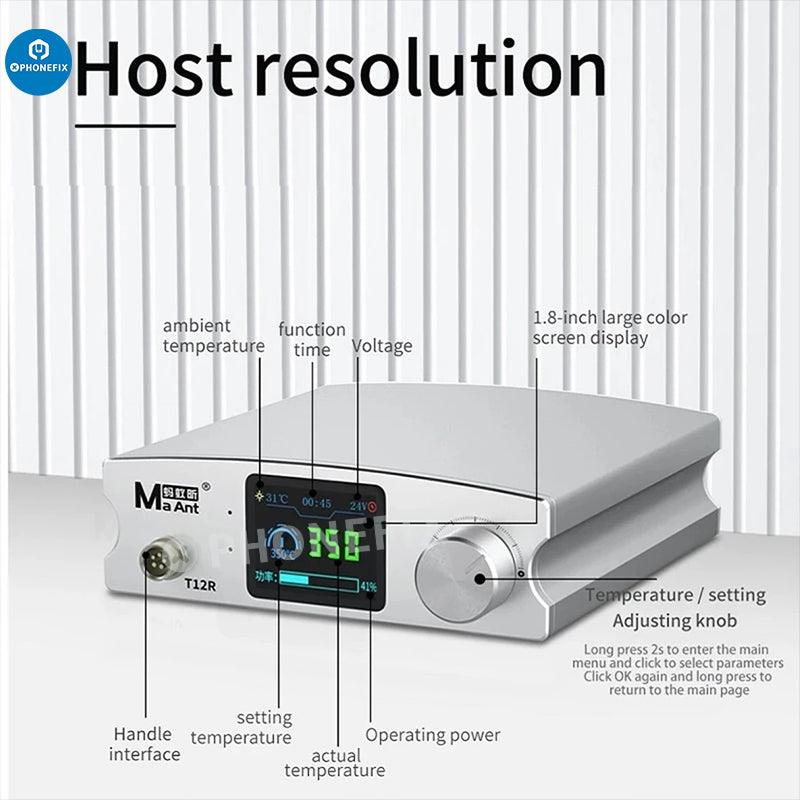 MaAnt T12R 75W Intelligent Soldering Station Professional Welding Tool. T12R Welding Station 75W Soldering Iron For SMD BGA PCB CPU IC Repair. Intelligent Sleep Mode Quick Heating for Electronics Repairing.