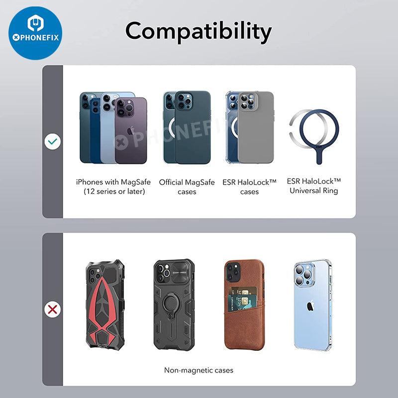 - Strong Magnetic Lock: magnets with a holding force of 1,200 g create a powerful lock on your caseless phone or phone with a MagSafe or HaloLock case, ensuring this ring holder only comes off when you want.