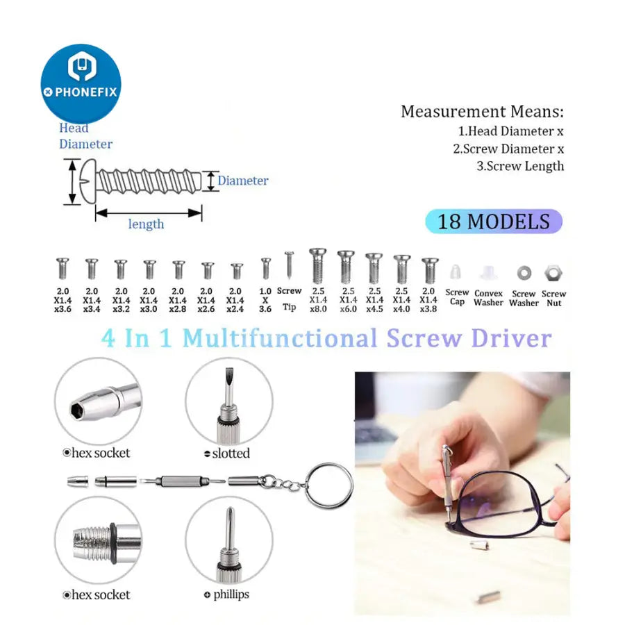 1 x 18 Kinds of Glasses Screws