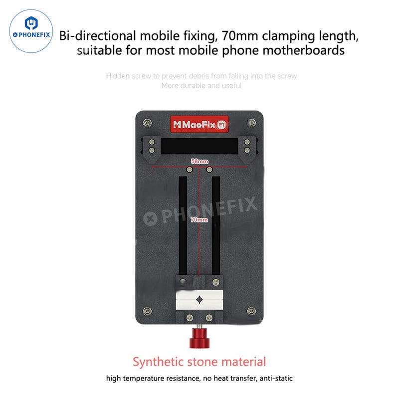 Amaoe MaoFix-F1 Multi-Function Repair Fixture for mobile phone motherboard clamps IC chip CPU degumming repair. Amaoe hidden screw design Multi-Function clamp for iPhone X-16 pro max motherboard fixing, chip degumming, BGA template bracket.