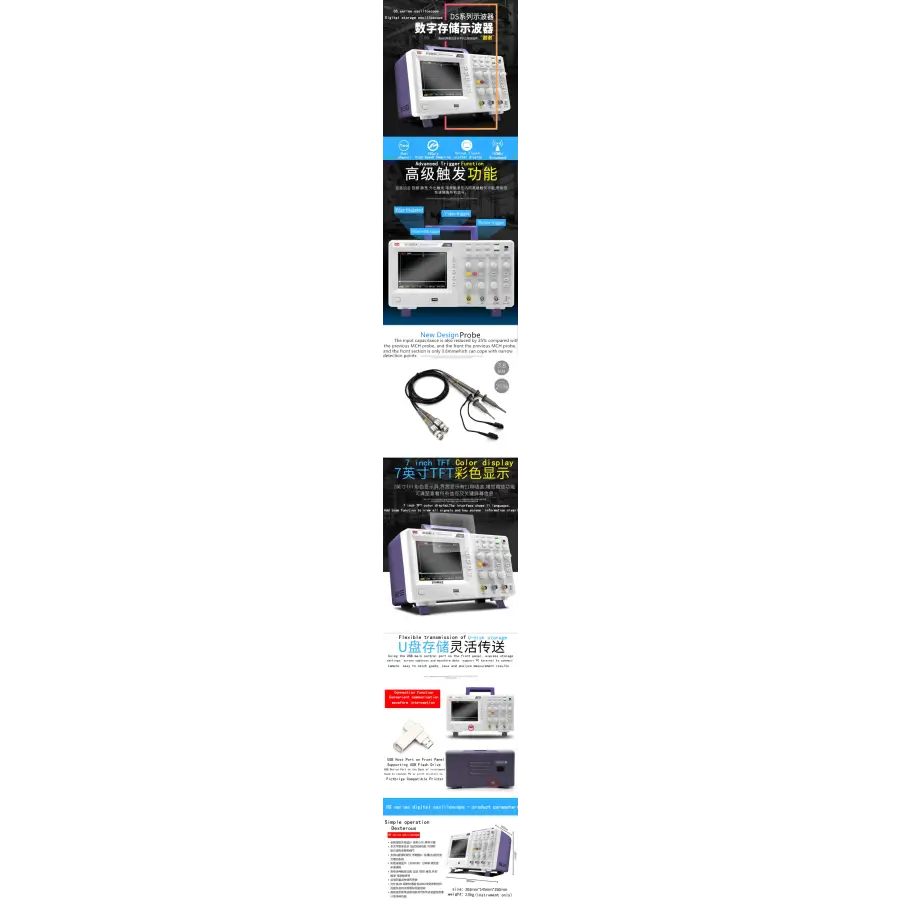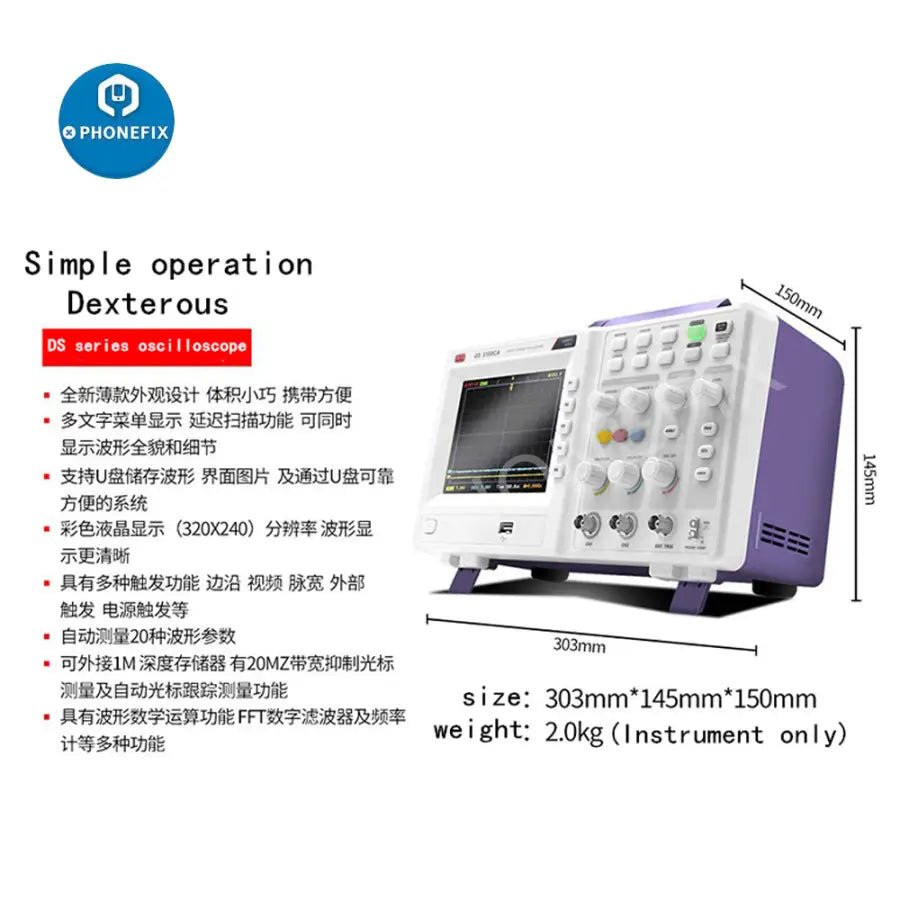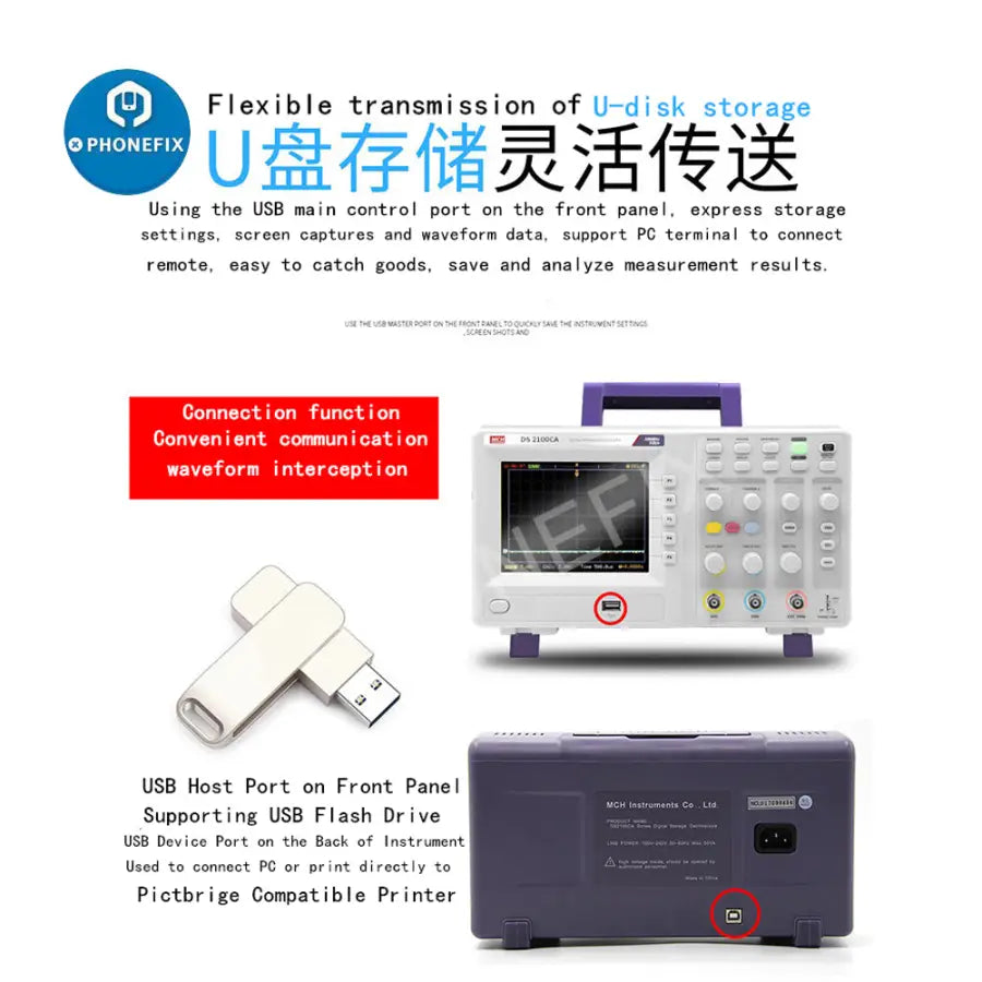 MCH Digital Oscilloscope Storage Oscilloscope Dual Channel Oscilloscope Sampling 1G 100MHZ DS-2100CA