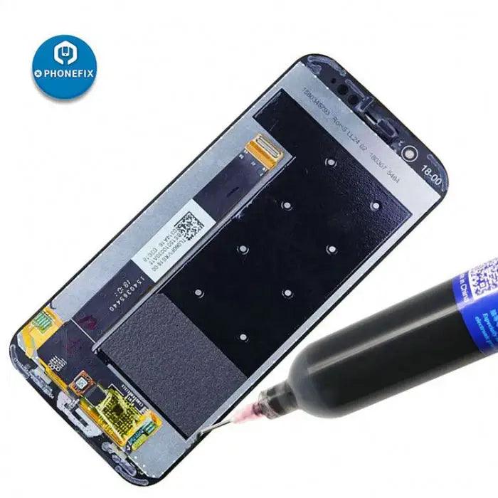 - Mechanic screen middle frame adhesive glues the screen perfectly without heating, good elasticity, no damage to the screen. After the glue is cured, its original rubber elasticity protects the LCD screen from vibration and shock, and its weather resistance, heat resistance, cold resistance will stay the same.