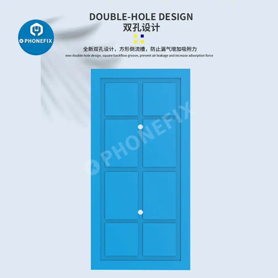 Features: 1. High temperature resistant material: The vacuum silicone pad has adhesive properties, not only can withstand high temperatures, but also can play a super anti-slip effect. 2. Good elasticity and not easy to deform: The product uses excellent environmentally friendly raw materials, has no peculiar smell, is soft, has good toughness, and does not deform when stretched and curled. 3. Double-hole design: new double-hole design, square backflow groove, prevent air leakage and increase adsorption force. 4. Suitable for a variety of separators. Applicable to a variety of separators and it can enhance adsorption.