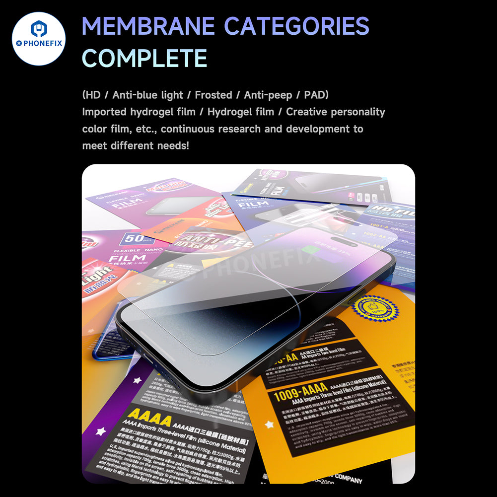 4. Membrane categories complete (hd/anti-blue light/ frosted /anti-peep /pad), imported hydrogel film/hydrogel film/creative personality color film, etc., continuous research and development to meet different needs!
