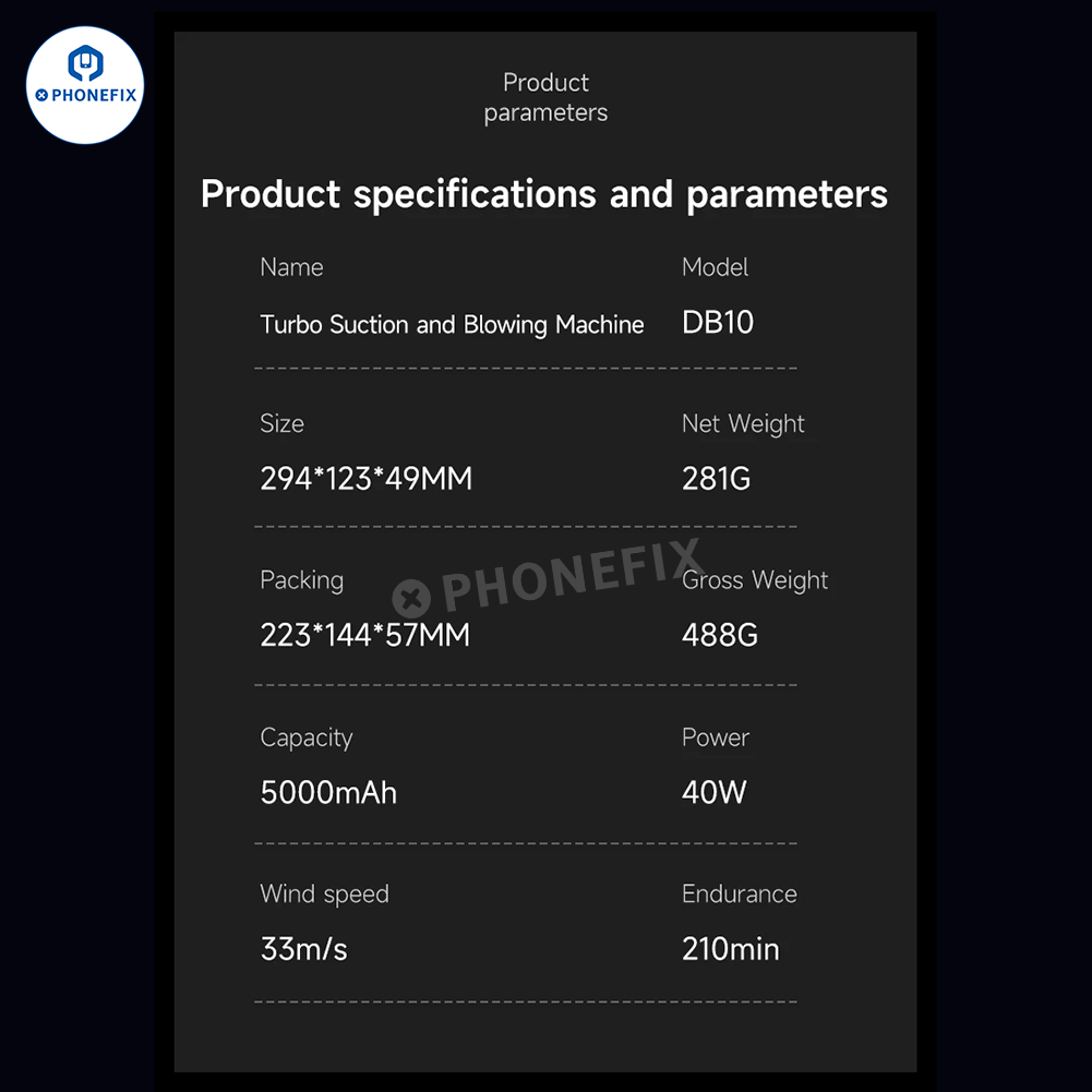 Mechanic DB10 Turbo Blower features 6-speed stepless change suction and blowing for cleaning and cooling electronics such as mobile phones and laptops. Full filtration of the dust cup filter, ultra-long battery life, 4200Pa hurricane suction, one suction and clean, easily deal with various dust/dirt/mites/sand/stones/hair, etc.