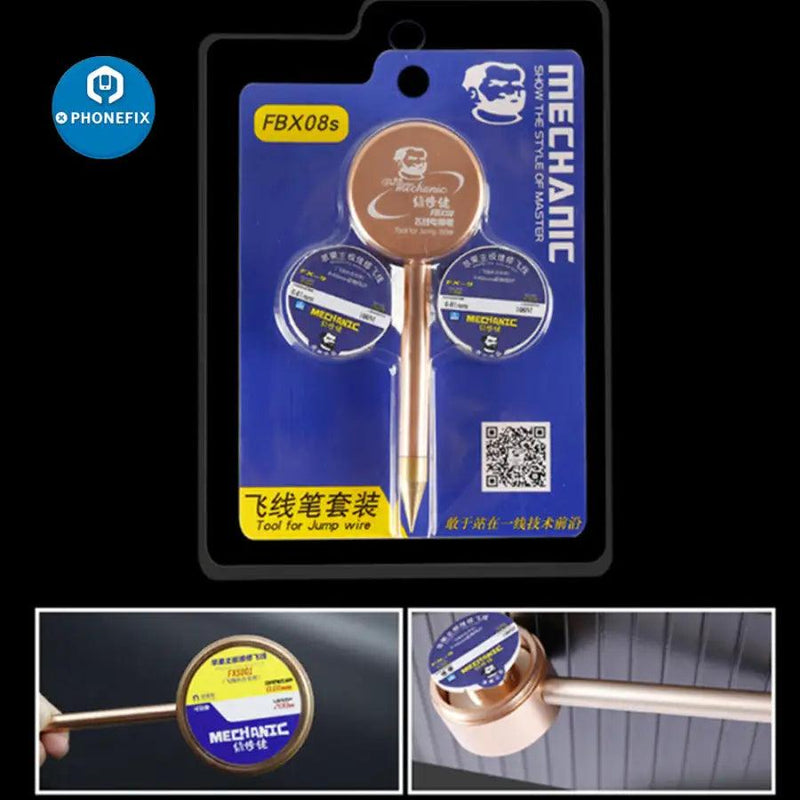 MECHANIC FBX08s 0.01mm fly line special pen ease spot welding wire for iPhone mainboard maintenance repair, Mechanic BGA spot welding special pen repairing flying line fingerprint jump wire for mobile phone motherboard fingerprint repair accessories, iPhone BGA mainboard fly line with fly line special pen for tweezers soldering tool