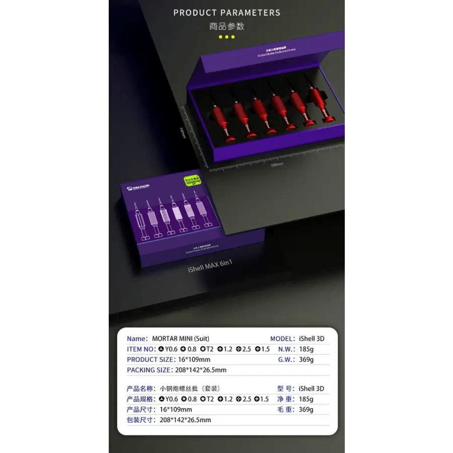 Mechanic iShell Max/iMini/iShell 3D precision screwdriver set for mobile phone repair disassemble tool. Mechanic iShell/Mini Max steel gun series mini screwdriver kit for iPhone opening repair tool, the most common size mixed precision screwdriver phone repair tool set.