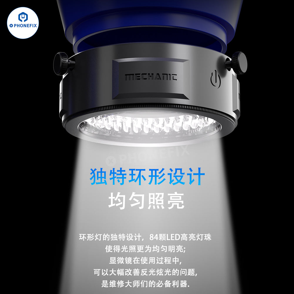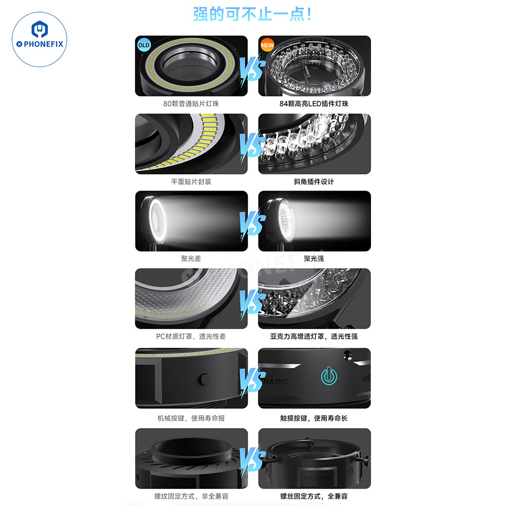 1. MECHANIC LS5/LS6 Microscope Ring Light utilizes 84 high-brightness LED plug-in lamp beads with an angled design for enhanced light concentration. The paired acrylic high-anti-reflection lampshade provides excellent light transmittance and more even illumination.