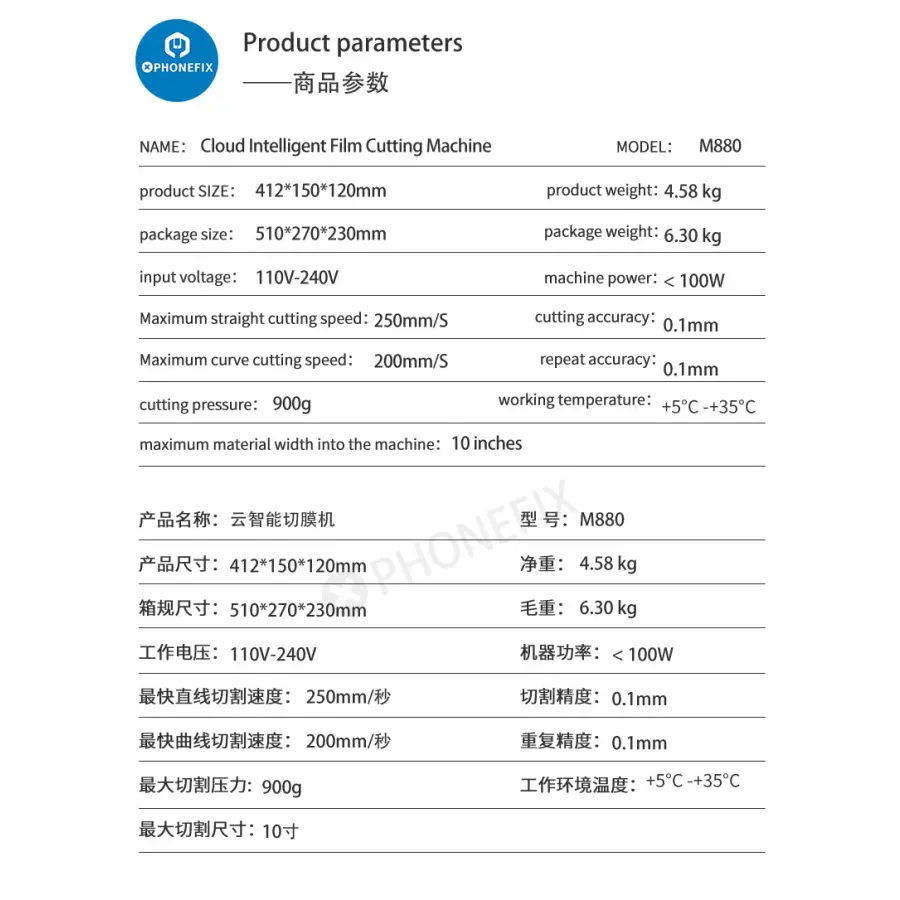 Mechanic M880 Cloud intelligent hydrogel film cutting machine with unlimited cutting times for cutting hydraulic sheets to protect Mobile Phone Watch iPad Tablets Front screen and rear glass. Mechanic M880 p