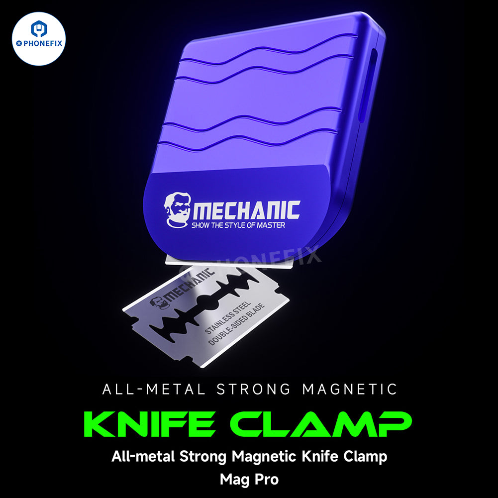 Mechanic Mag Pro All-metal Strong Magnetic Knife Clamp with Stainless Steel Blades for Mobile Phone Repair. Such as cell phone screen separation, phone frame opening, dry glue scraping, OCA glue removal, film cutting, shaving, etc.