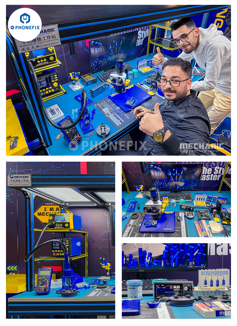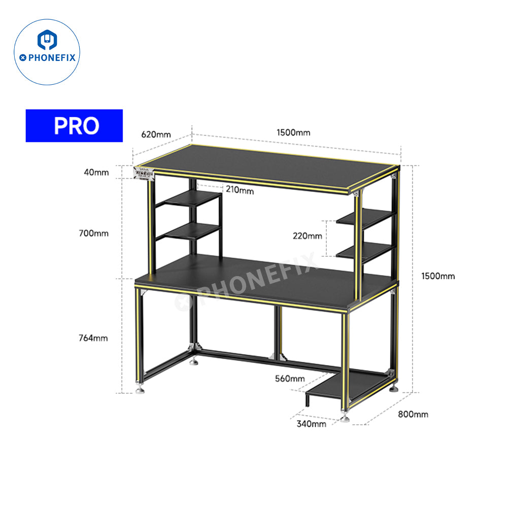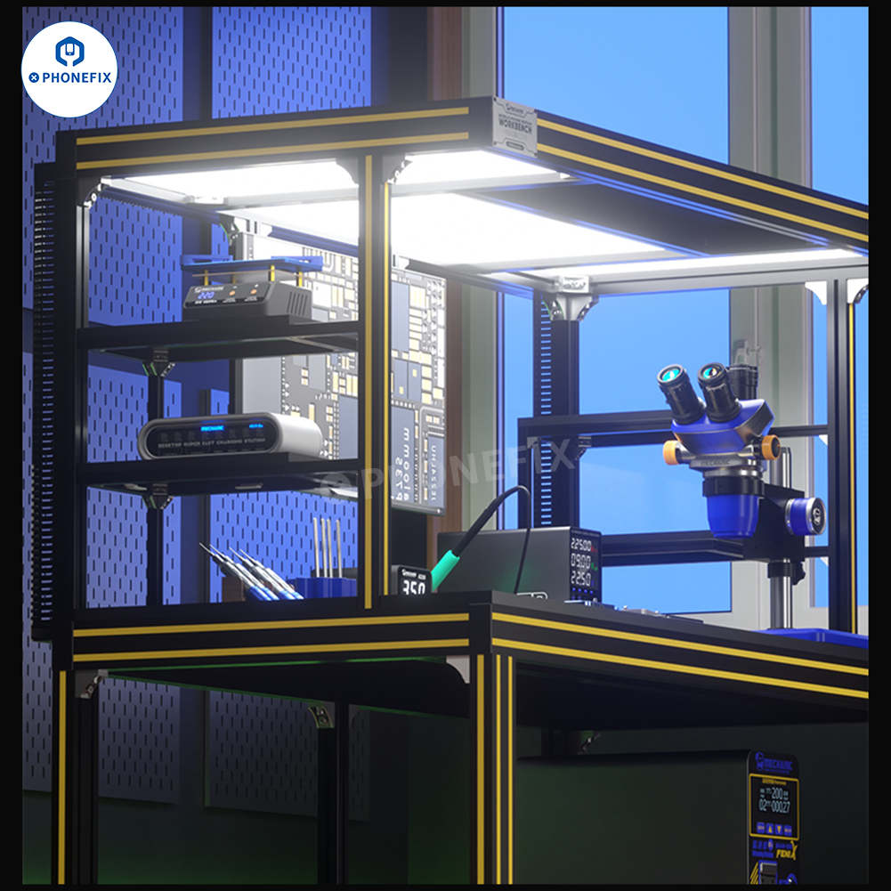 Mechanic Multi-Function Mobile Phone Repair Workbench built-in LED lighting for mobile phone electronic PCB BGA soldering repair. Mechanic Deluxe/Pro/Starter Mobile Phone Repair Workbench built-in lighting and adjustable height settings, allowing to perform mobile phone repair and soldering work directly on the workbench.
