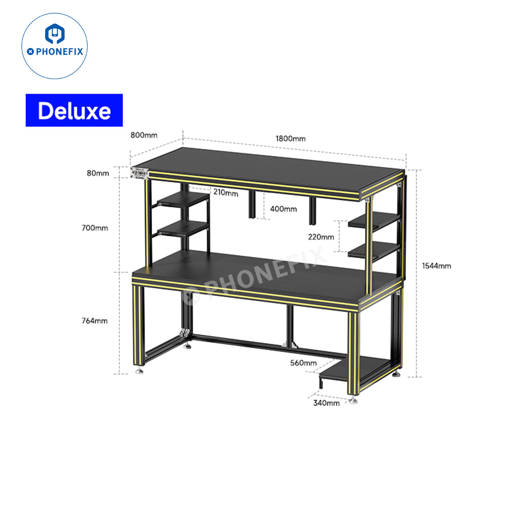 Mechanic mobile phone repair work bench has spacious sturdy tabletop that can hold multiple display, screwdrivers, tweezers, blades and other storage box tools & mobile phone parts, helping to keep tools parts tidy easy to access, thereby reducing the time spent searching for items during repairs.