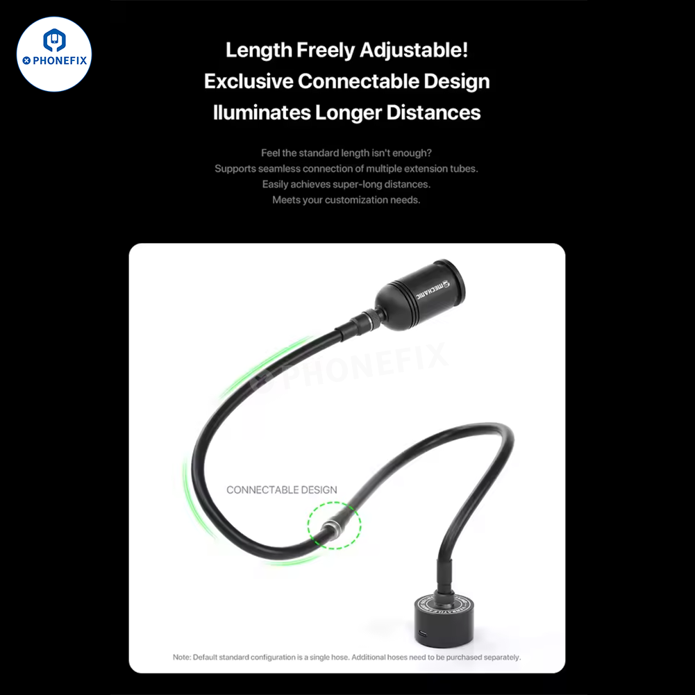 MECHANIC Omni-L Microscope Companion Light Source with Magnetic Base provides 360° all-around Oblique Lighting for Mobile Phone Motherboard Repair. 5W High CRI LED with Stepless Dimming. Precise, shadowless, and blind-spot-free lighting, along with three mounting options, makes it suitable for PCB repair, watch repair, micro-soldering, and other repair work.