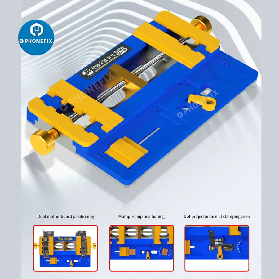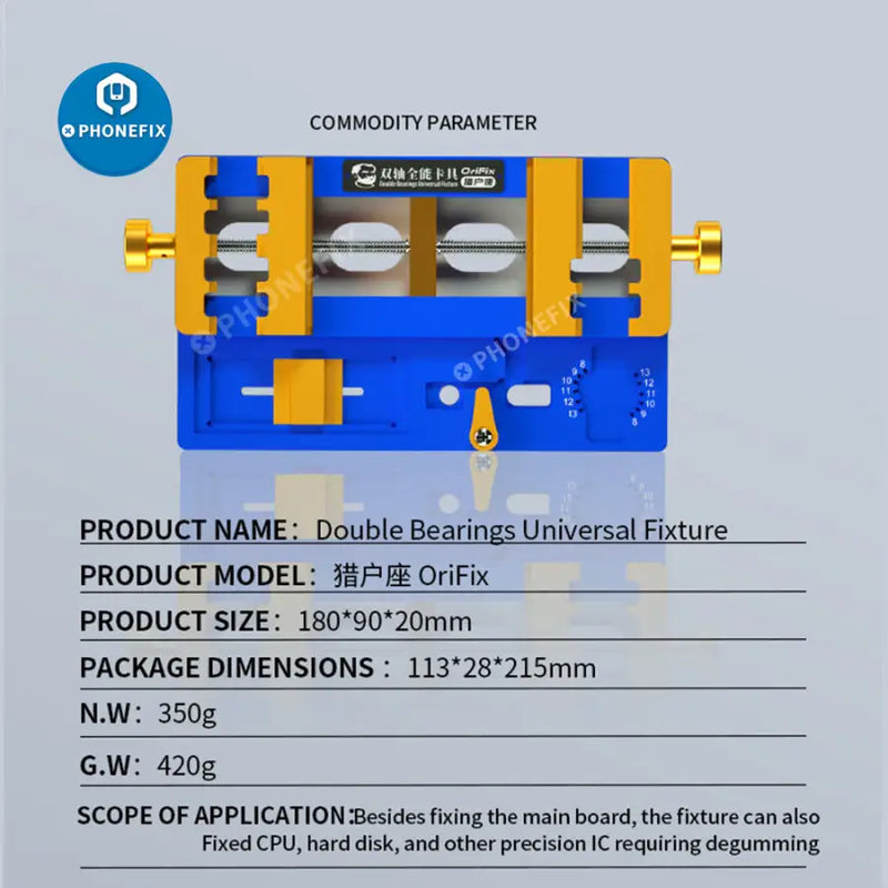 Mechanic ORI Pro Dual Axis Fixture For Mobile Phone Motherboard Chip Fixed Clamping, battery welding and component storage. Mechanic Ori Mini Dual Axis Motherboard Fixture Universal Chip Positioning Clamp For Mobile Phone Repair. MECHANIC OriFix Universal PCB Fixture Mobile Mainboard Maintenance CPU NAND Multi-function Double Bearing Clamp For iPhone Android Motherboard Chip Dot Projector Repair.