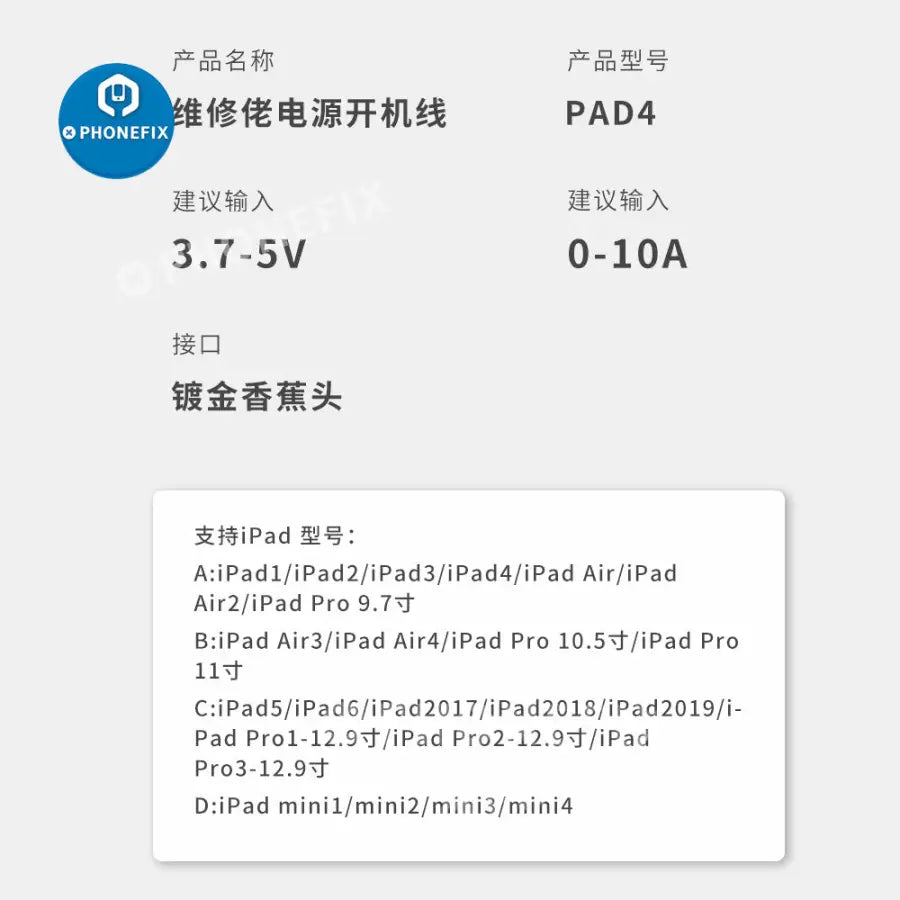 MECHANIC PAD4 Power Boot cable iPad series DC Power Supply Boot Test Cable for iPad/iPad Air/iPad mini/iPad 9.7/iPad 10.5/iPad 11/iPad Pro, ect.