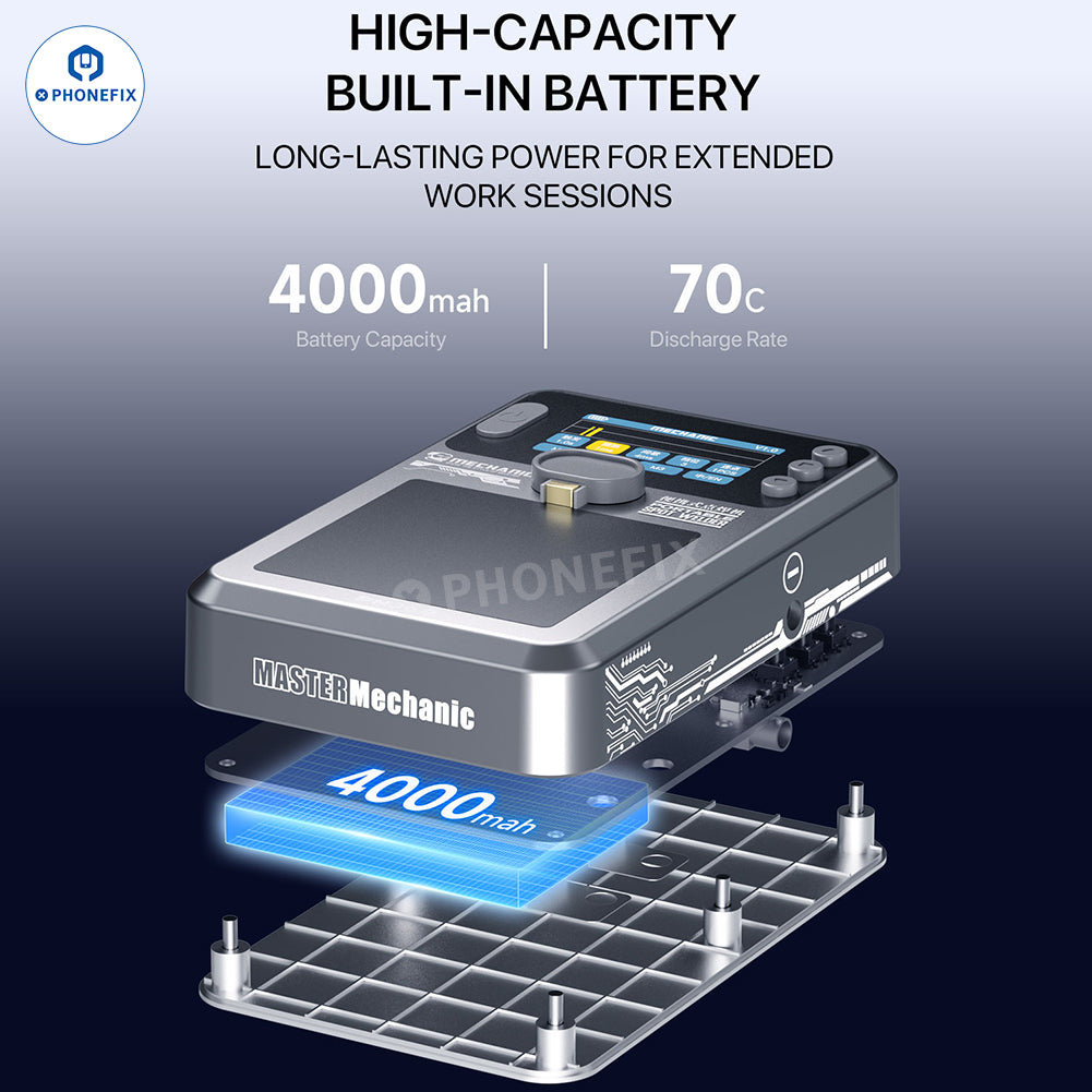 MECHANIC PN360 Portable Spot Welder utilizes copper busbar guidance and dual-pulse technology for more stable and secure mobile phone battery welding. HD TFT color LCD screen displays real-time battery welding parameters. MECHANIC PN360 spot welding machine supports multiple output adjustments and automatic welding modes. Suitable for mobile phone battery spot welding, lithium battery nickel plate spot welding, battery replacement, and DIY repairs.