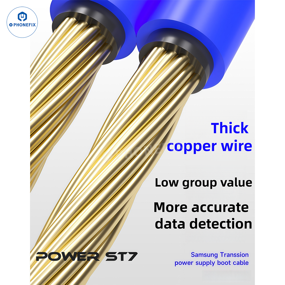 MECHANIC POWER ST7 Samsung Transsion Power Supply Boot Cable quickly powers Samsung S series, FOLD series, Note series, Flip series, and most Transsion phone motherboards. Ultra-flexible, conductive cable offers excellent stability and durability, making it suitable for powering and repairing Samsung and Transsion phones.