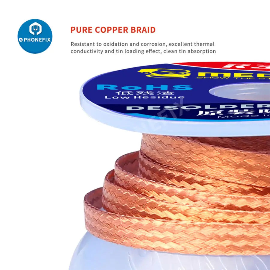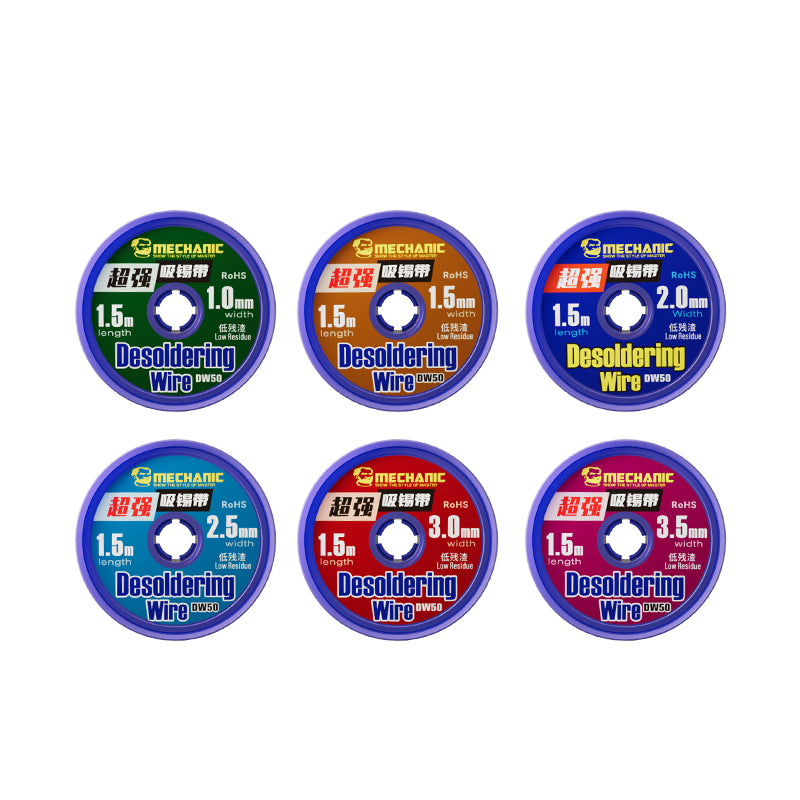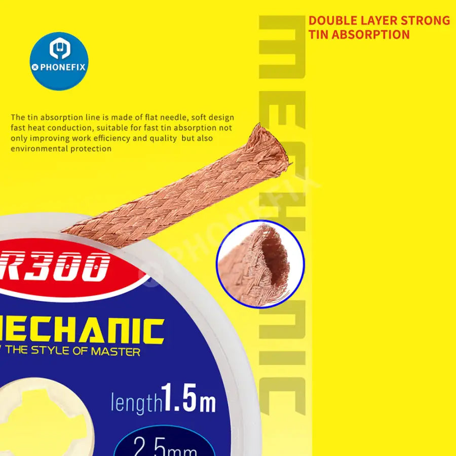 Mechanic R300 DW50 Desoldering Wire 1.0/1.5/2.0/2.5/3.0/3.5/ 4.0mm Low Residue Ultra-powerful Solder Wick For Mobile Phone PCB BGA Circuit Board Repair. Mechanic R300 DW50 BGA desoldering sucking wire.