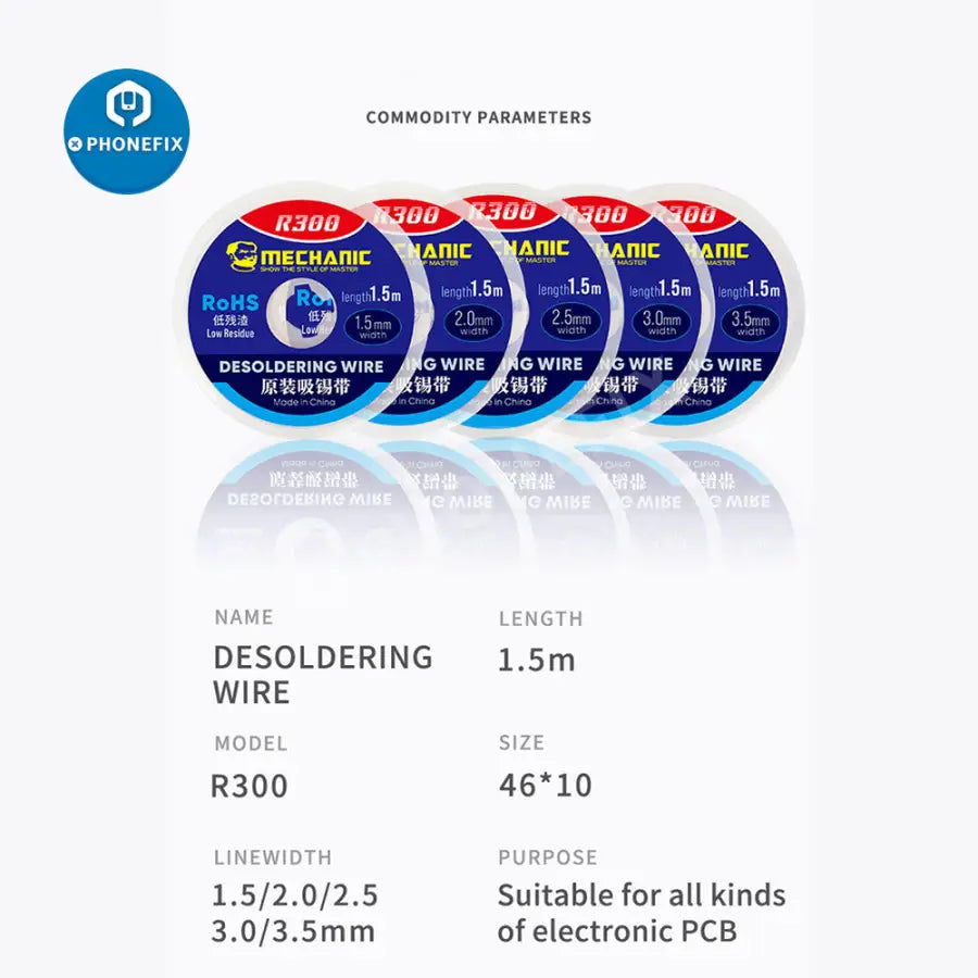 1. Mechanic R300 1.5m desoldering wire(10pcs/roll): 1.0/1.5/2.0/2.5/3.0/3.5/4.0mm.