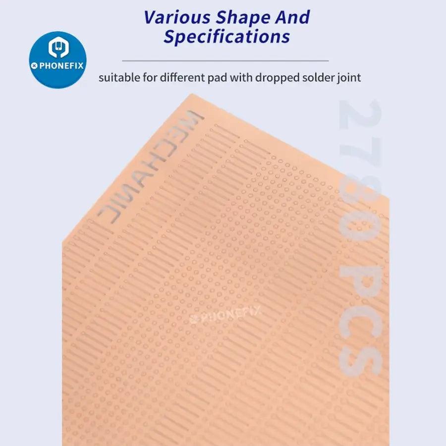 Replace the traditional circling of jump wire to fill the missing solder joint restore to the original pad and without trace. Mechanic Soldering Lug will free you from the complicated jumping wire for repairing missing pads.
