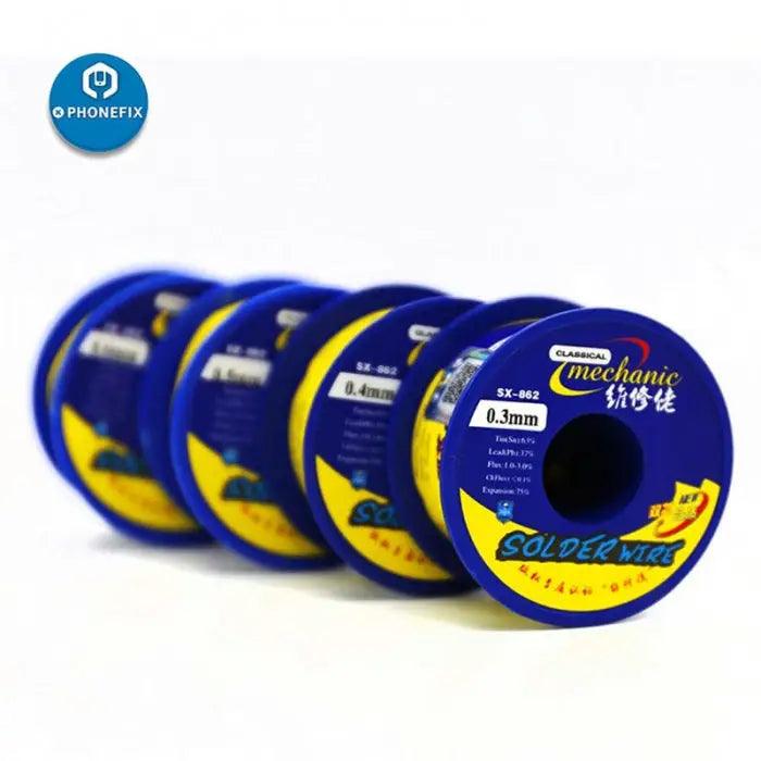 MECHANIC SX-862 Double Rosin Hole Solder Wire for Mobile Phone Repair. Mechanic SZ-862 183℃ Low Melting Point No-clean No-residue 60g Dual Core Soldering Wire. Easy to tin, no false soldering, solid and full solder joints, make cell phone motherboard welding work smoother and more efficient.