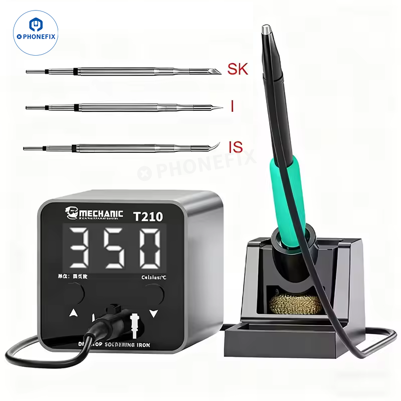 MECHANIC T210/A210 50W simple soldering station with T210 handle and C210 series soldering tips 2 seconds fast heating for mobile phone BGA SMD PCB CPU chips welding repair.
