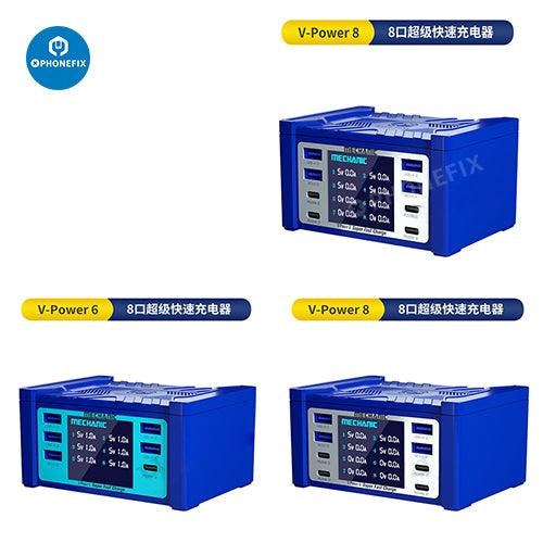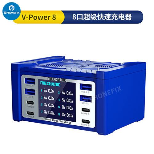 MECHANIC V-Power 6 8 8S super fast charger with QC3.0 PD USB charging port 55W 100W 155W for iPad mobile phones smart watches. Mechanic V-power 6/8/8S Fast Charger Multiple interfaces for ipad mobile phones smart watches, etc.