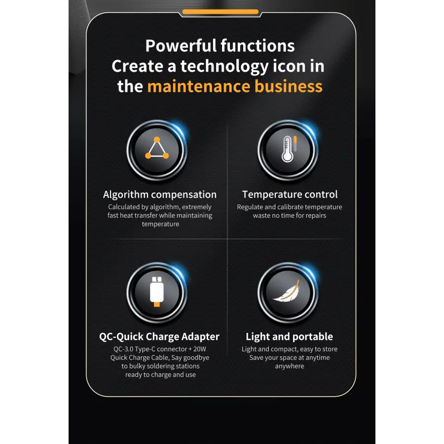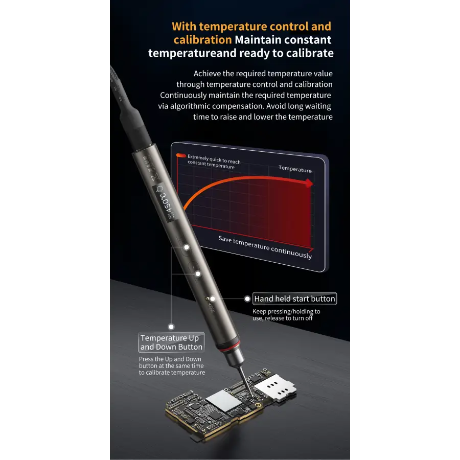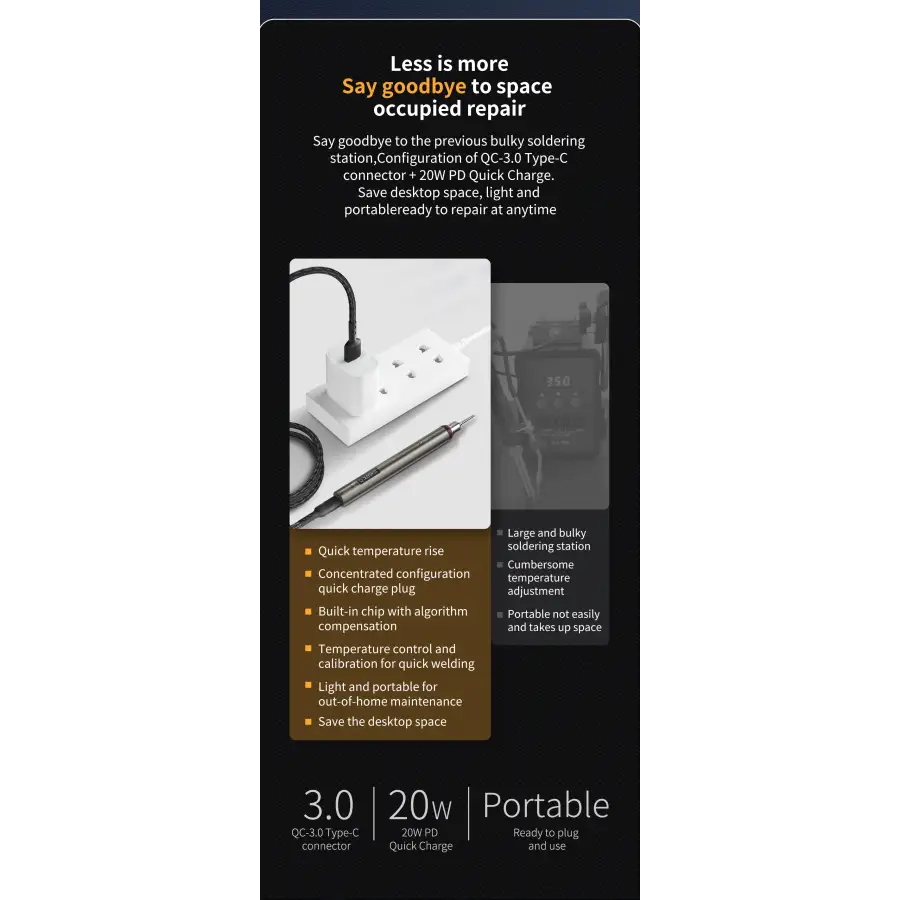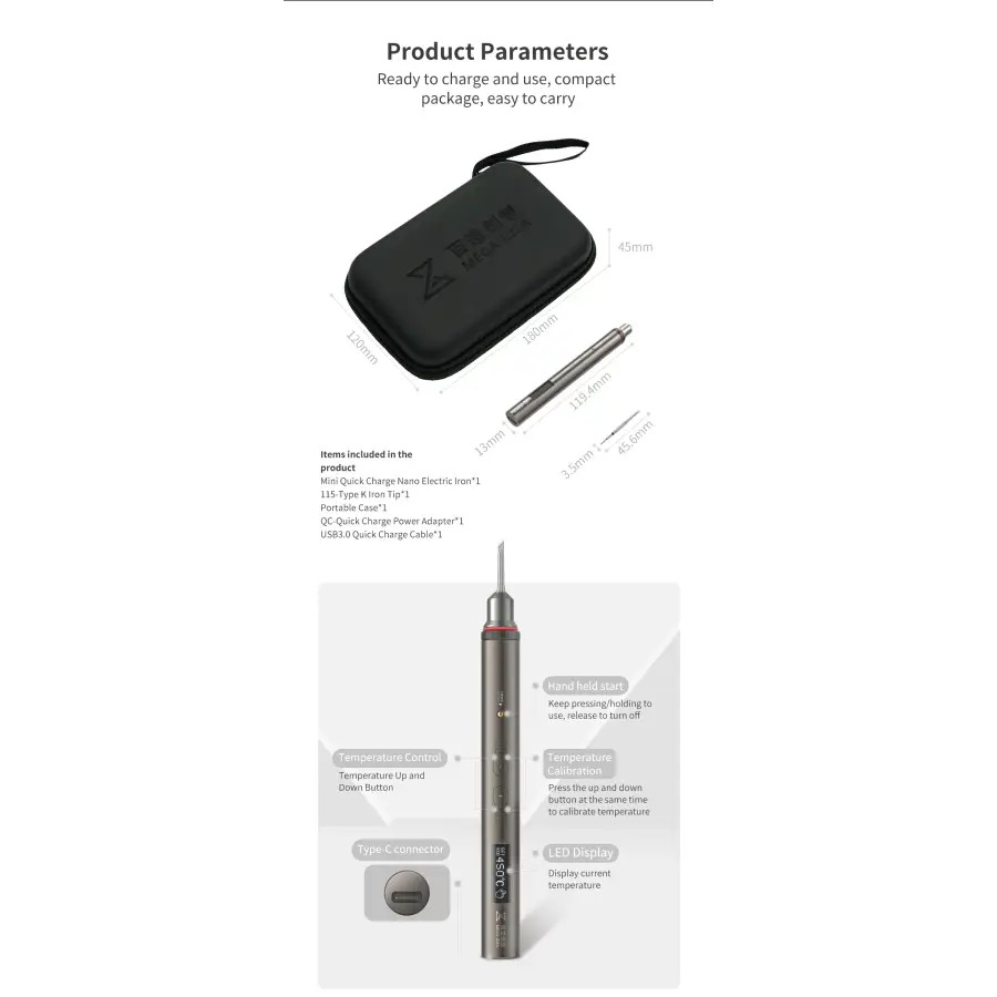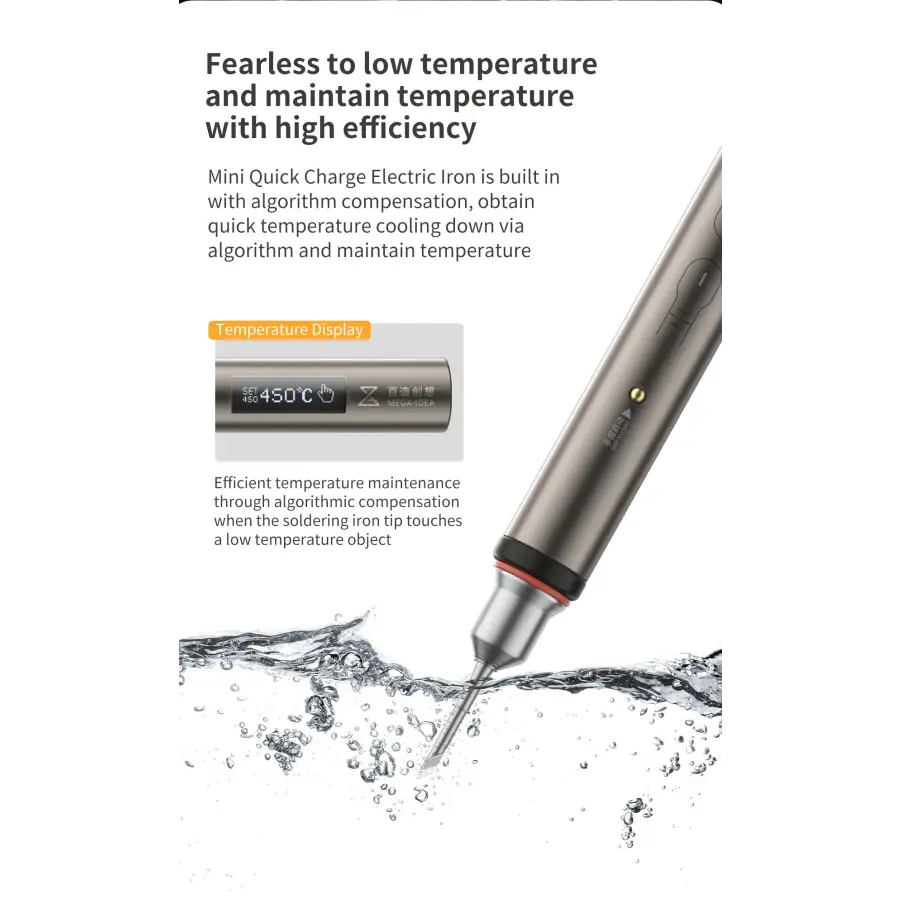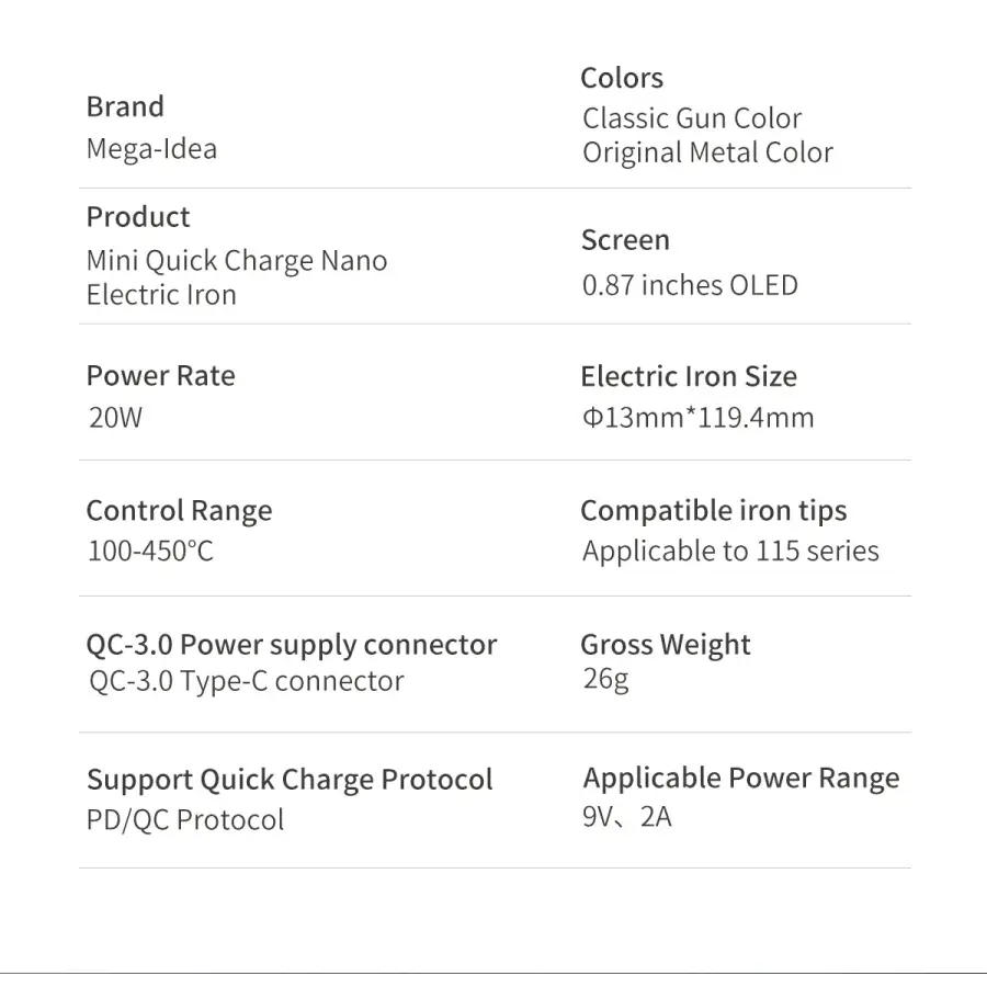 Features:QIANLI MEGA-IDEA mini 20W Quick Charge Nano Electric Iron,Algorithm compensation function, tin soldering and extremely fast temperature cooling down.