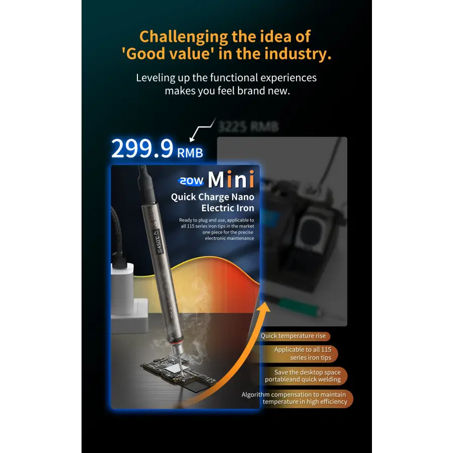 QIANLI MEGA-IDEA mini 20W Quick Charge Nano Electric Iron For all 115 series iron tips Welding Repair, Ready to plug and use, applicable to all 115 series iron tips in the market, one piece for the precise electronic maintenance.