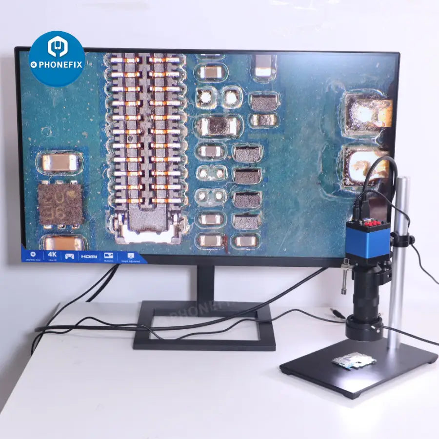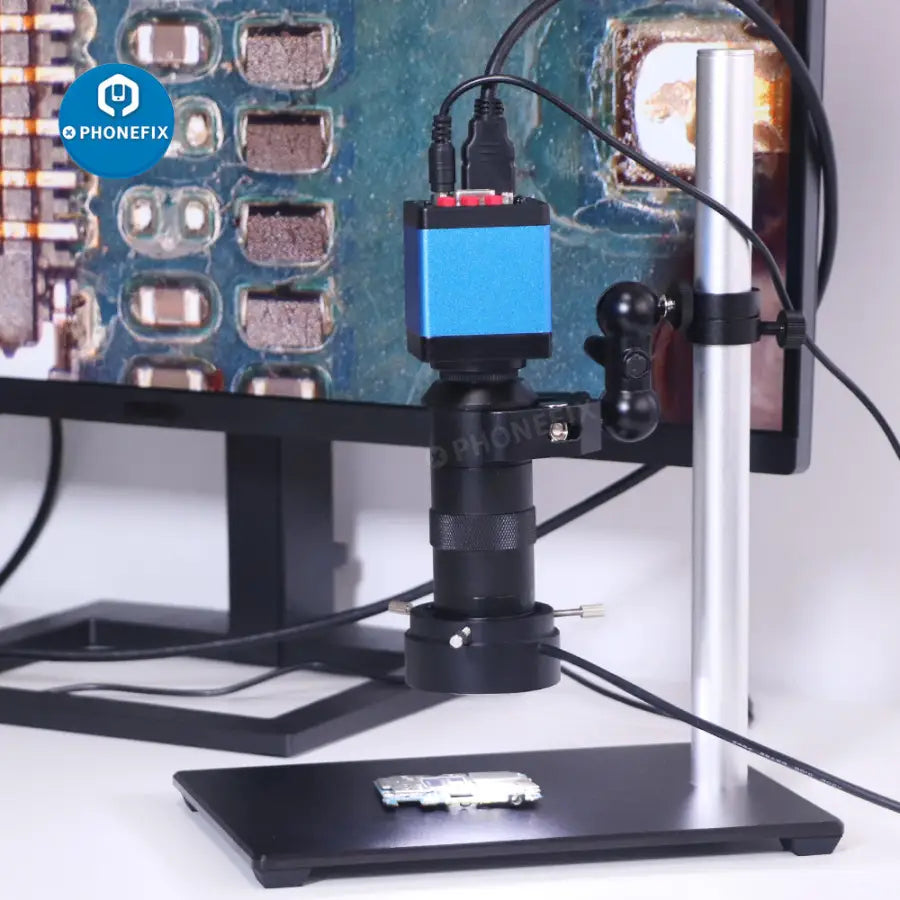 A Industrial Microscope Camera Set: 1X~130X Zoom C Mount Lens + Universal 720 Degree Rotatable Articulating with Adjustable 1/4" Thread Bracket Super Clamp + 40 LEDs Light + 13MP 1/3" 60F/S HDMI VGA Two Output Industrial Camera for Vision Inspection Industry 4.0.