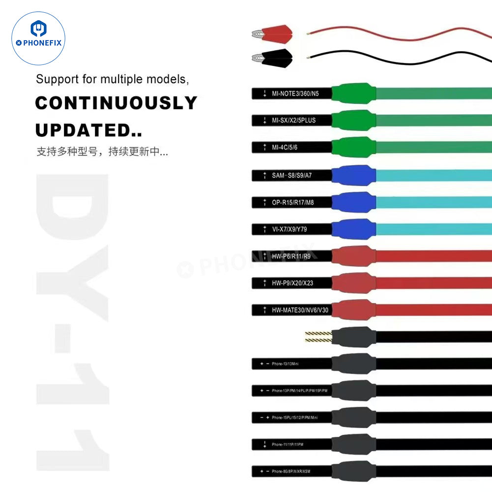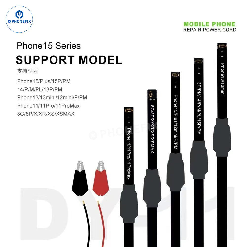 1. MiJing DY-11 power cable with soft FPC connector buckle for iPhone 8-15 Pro Max and Android Phones, like Samsung, Huawei, Xiaomi, etc. Will release a cable for iPhone 16 series soon.