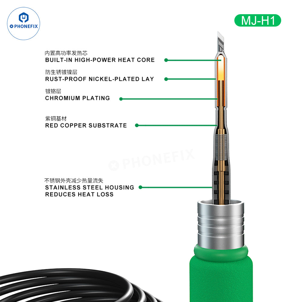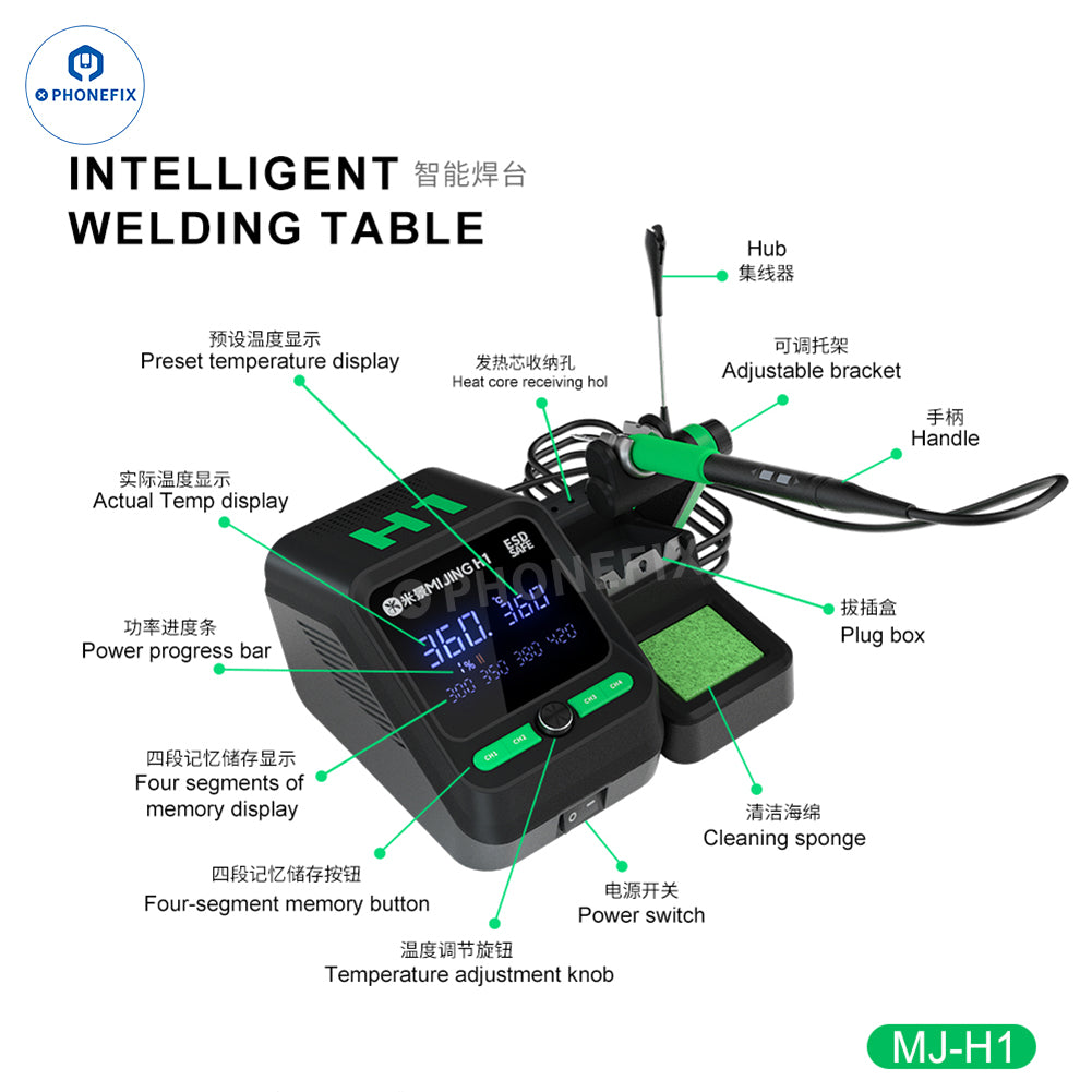 MIJING H1 intelligent soldering station with digital display and multi-function sleep socket, compatible with T210 T115 T245 wire control handles and C210 C115 C245 soldering iron tips, suitable for mobile phone motherboard PCB BGA chip welding, desoldering, tinning and repair.