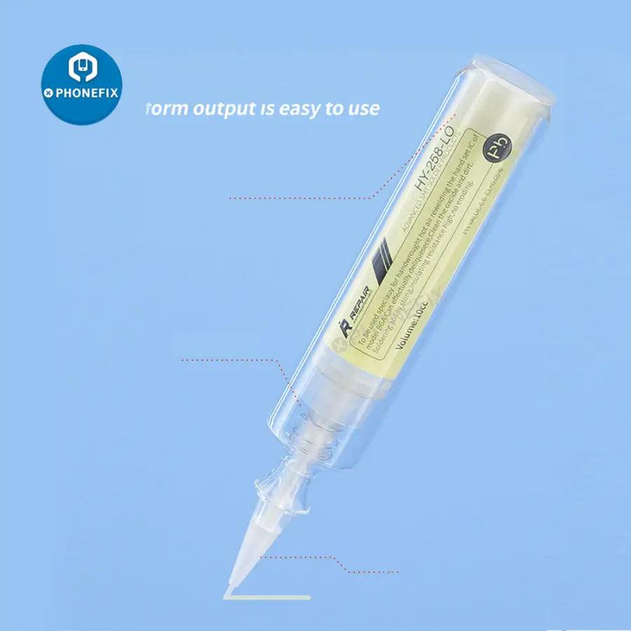 Mijing iRepair HY-258 LO solder paste flux for mobile phone maintenance, environmental protection lead-free solder paste, MiJing HY258 10CC vacuum tube antioxidant paste solde paste flux for for BGA, IC chips, motherboard soldering. Mijing iRepair HY-258 10CC Antioxidant Solder Paste Flux For Mobile Phone Repair.