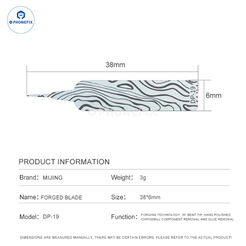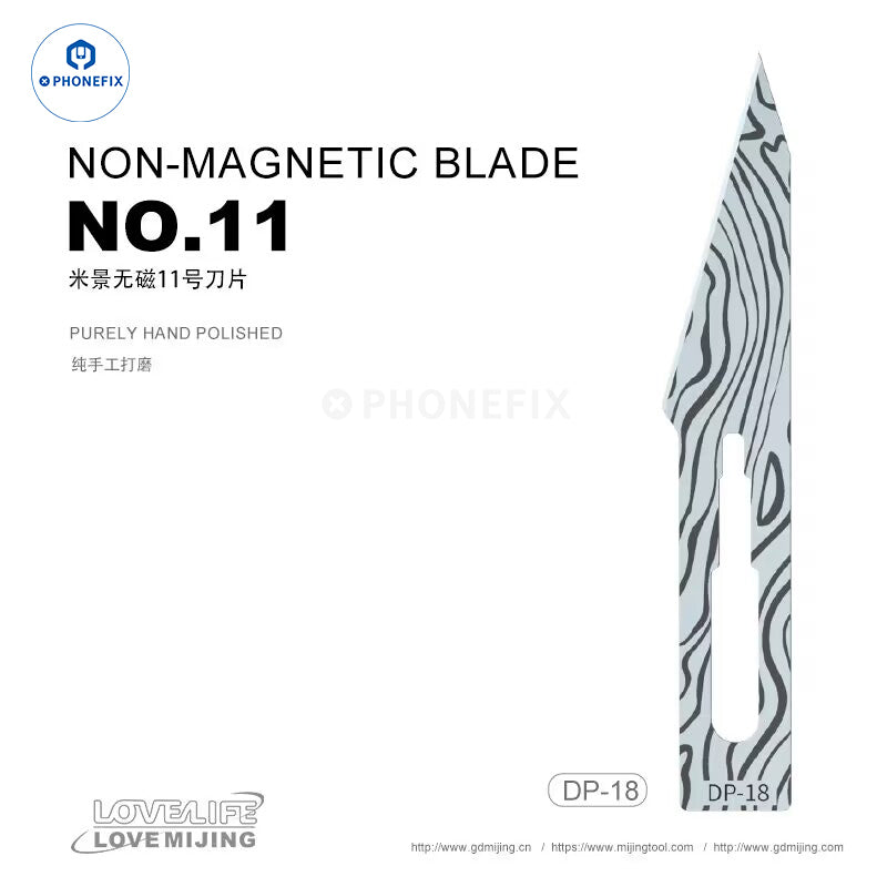 MIJING DP-19 Forge Blade/DP-18 Non-magnetic NO.11 Blade/DP-08 Screen Holder Blade for screen/IC glue cleaning removing, screen bracket disassembly, CPU chips prying, ect. 5Pcs/set MiJing Multi-functional Hand Polished Blades For Glue Remover/Chip Fix/CPU chip disassembling.