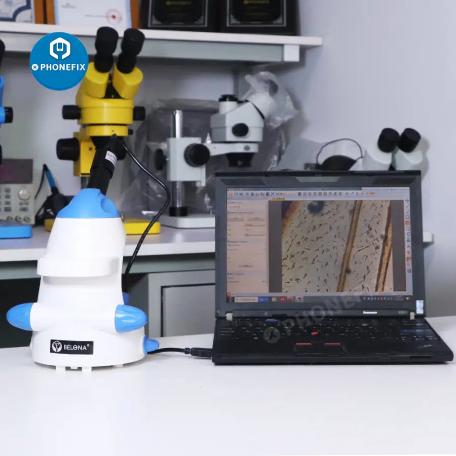 You can use your phone's camera to take pictures and videos of what you'd see through looking through the microscope.