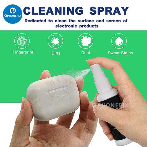 What you can got: 1 Screen cleaner spray for electronic devices + 1100 clean thin tip + 20 cleaning swabs + 8 wipes + 5 soft bristle brushes + 2 durable microfiber cleaning cloth + 2 soft brush + 1 air blower + 1 storage box.