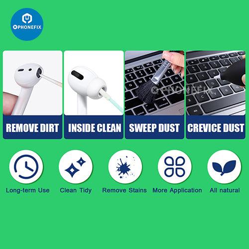 Deep cleaning: No more worrying about messy phones and earphones. The cleaning kit removes dirt from your earphones and keeps your electronics cleaner.