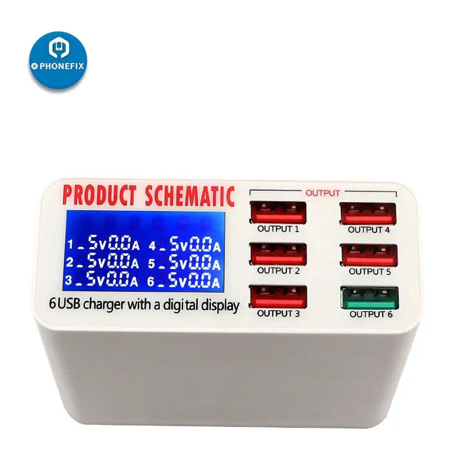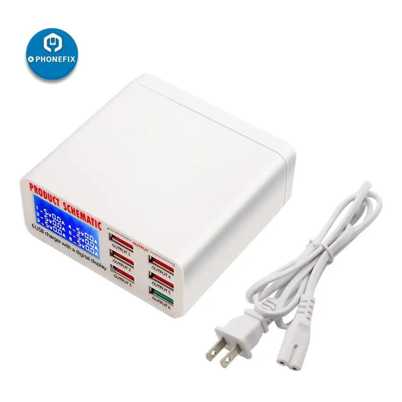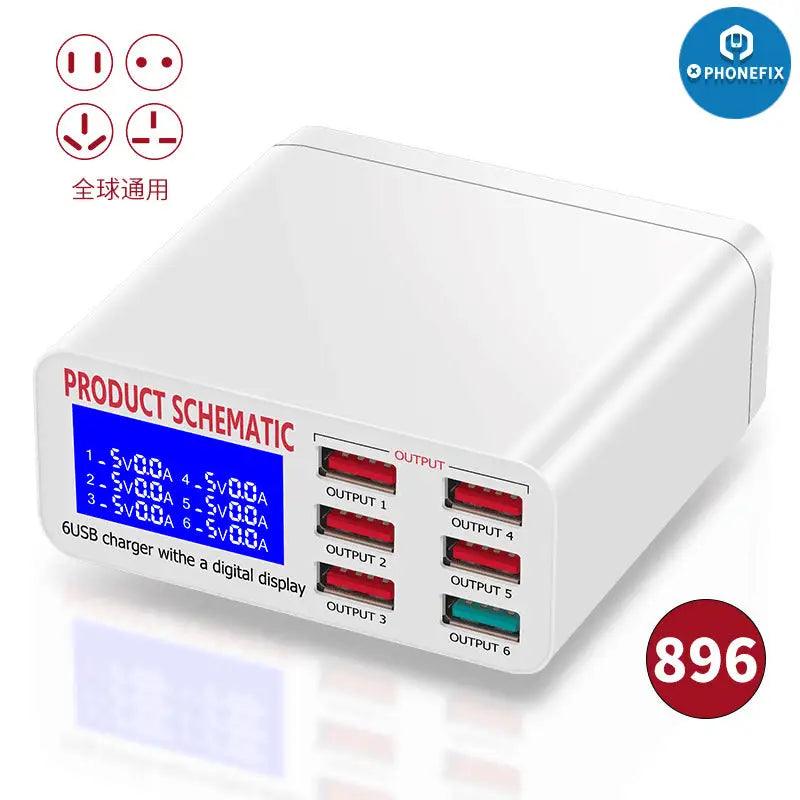87W 40W 6-port display charger for mobile Phone repair. 6 Ports QC3.0 Charger With Display for Mobile Phone Desktop iPhone Samsung Xiaomi charging. 896P QC3.0 87W 6 ports charger. 896 QC3.0 Charger 5V. 899 40W 6 Ports Charger with display. Multiport LCD Display USB Charging Station EU US UK Plug Fast Charger for iPhone 6 7 8 X iPad Pro/Air/Mini/1/2/3 Tablet PC Digital Camera. 6 Port USB Rapid Charging Station.