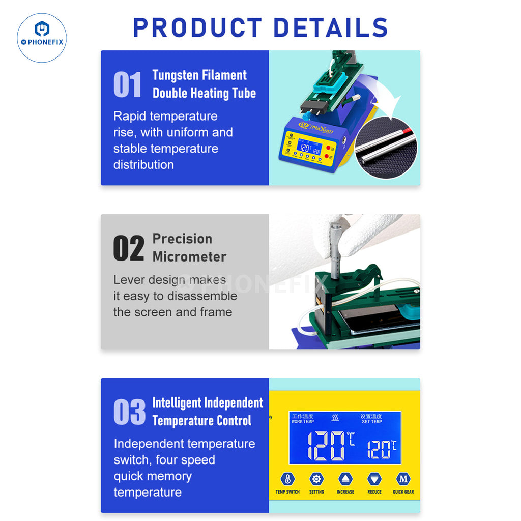 1. Anti-scalding strips are installed on both sides of the MaYuan MY-S400 Multi-function heating separating platform, no need to wear gloves, comfortable touch, enhance the repair experience.