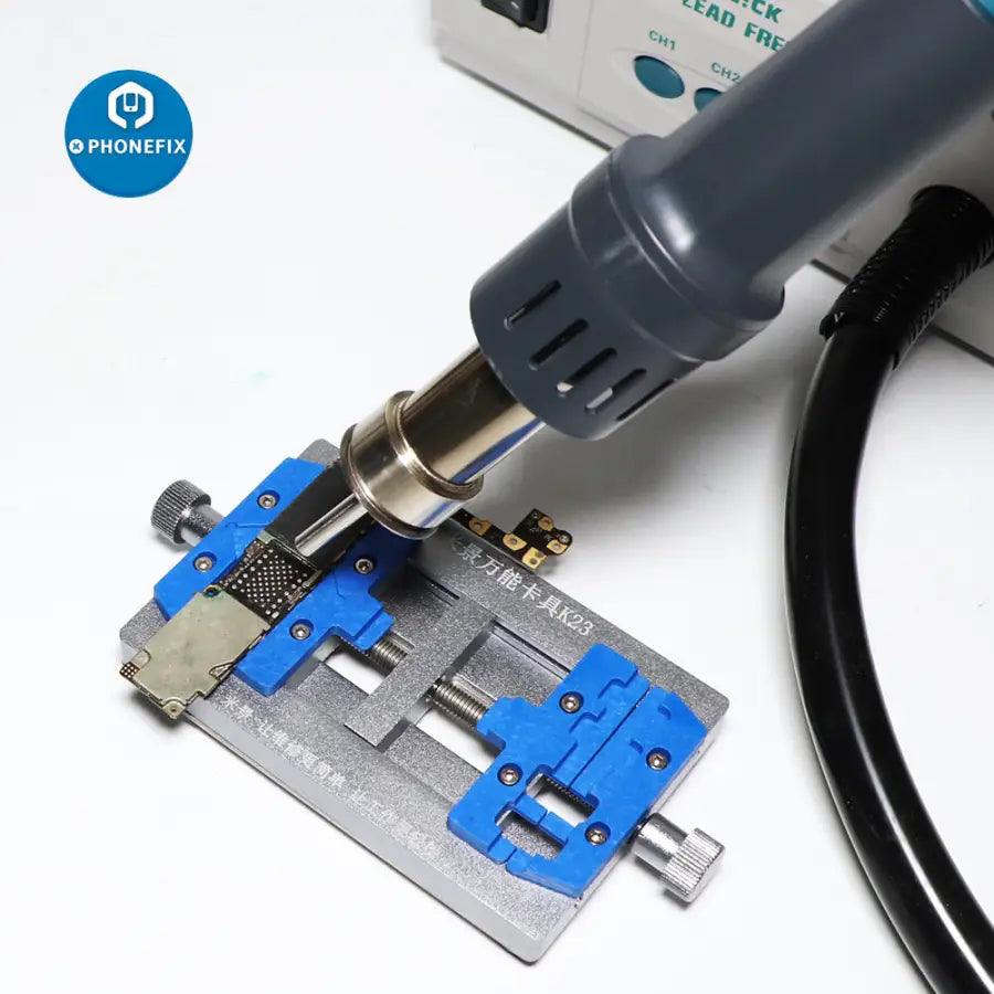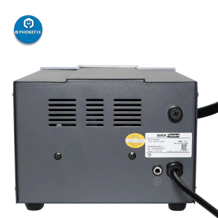 Original QUICK 861DW hot air rework desoldering station is a professional phone repair rework station, desoldering and soldering of BGA IC components, 1000W / 500 °C QUICK 861DW lead free rework station for mobile phone BGA desoldering repair.