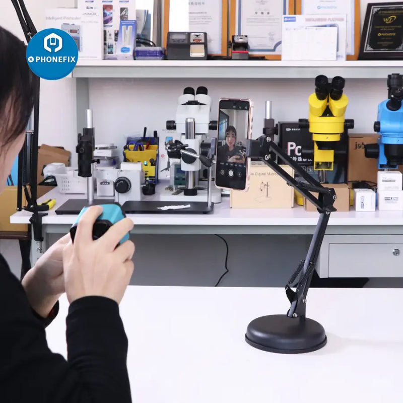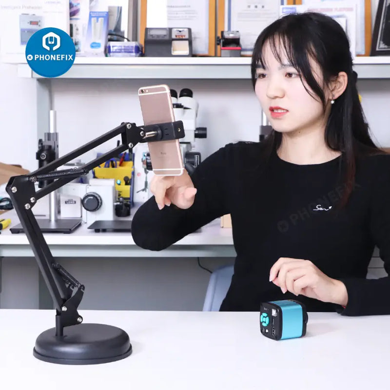 Features: 1. Flexible long arm for any distance and angle adjustment. 2. Anti-slip rubber and soft silicone pad inside two ends clip to securely mount your devices in place with no harm to it as well. 3. Suitable for video microscope, industrial repair testing, most cameras with screw holes. 4. Great for taking steady shots and overhead live streaming, stop motion animation, crafting, cooking, baking, online lessons,etc. 5. Articulating Arm Phone Mount - Double-braced arms with suspension springs on each boom arm more sturdy and durable without shaking or dropping.
