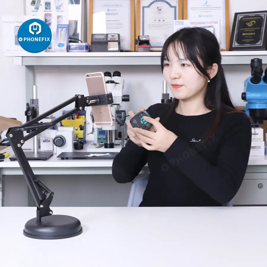 Overhead Phone Video Stand with Base, Desktop Articulating Arm Phone Mount Tablet Stand, Adjustable 360° Cell Phone Holder for Video Recording Live Stream.