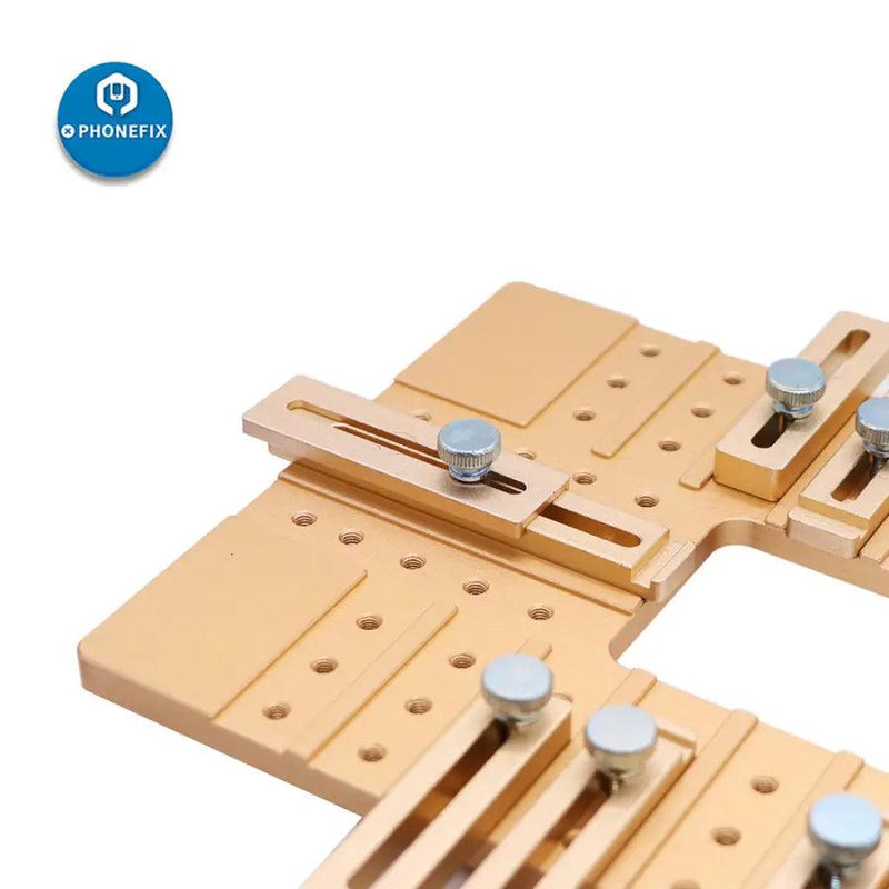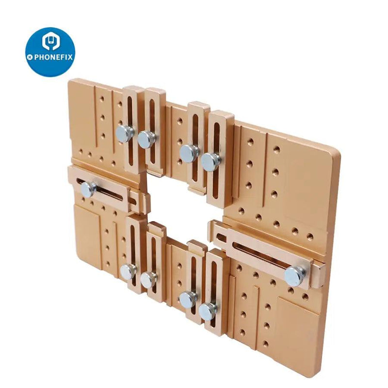 Universal aluminium alloy all-purpose LCD screen module jig holder for mobile phone OCA laminating, aluminium alloy phone screen repair holder, adjustable cell phone front outer glass lens module clamp, LCD UV glue module and glass screen holder for cell phone LCD screen repair tool