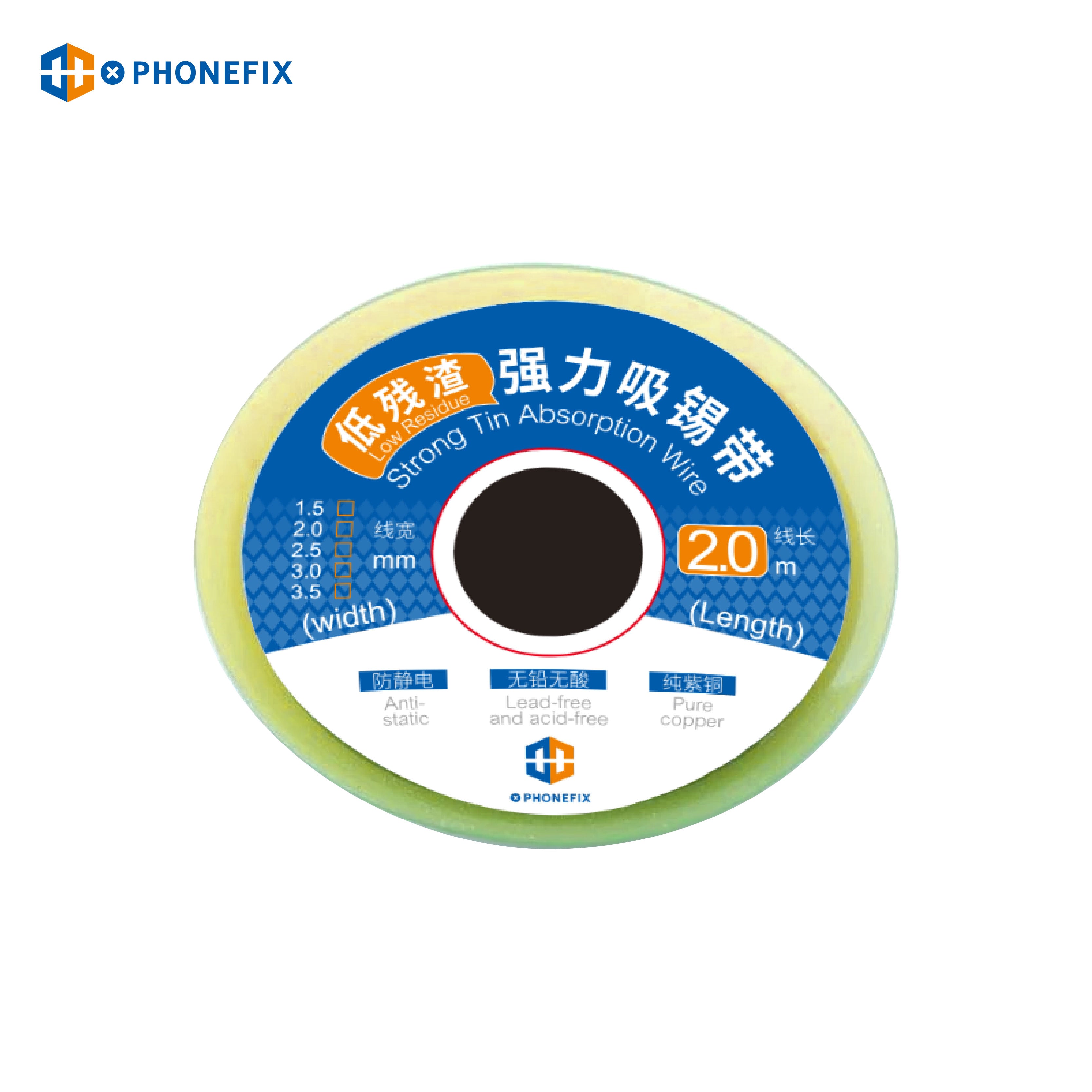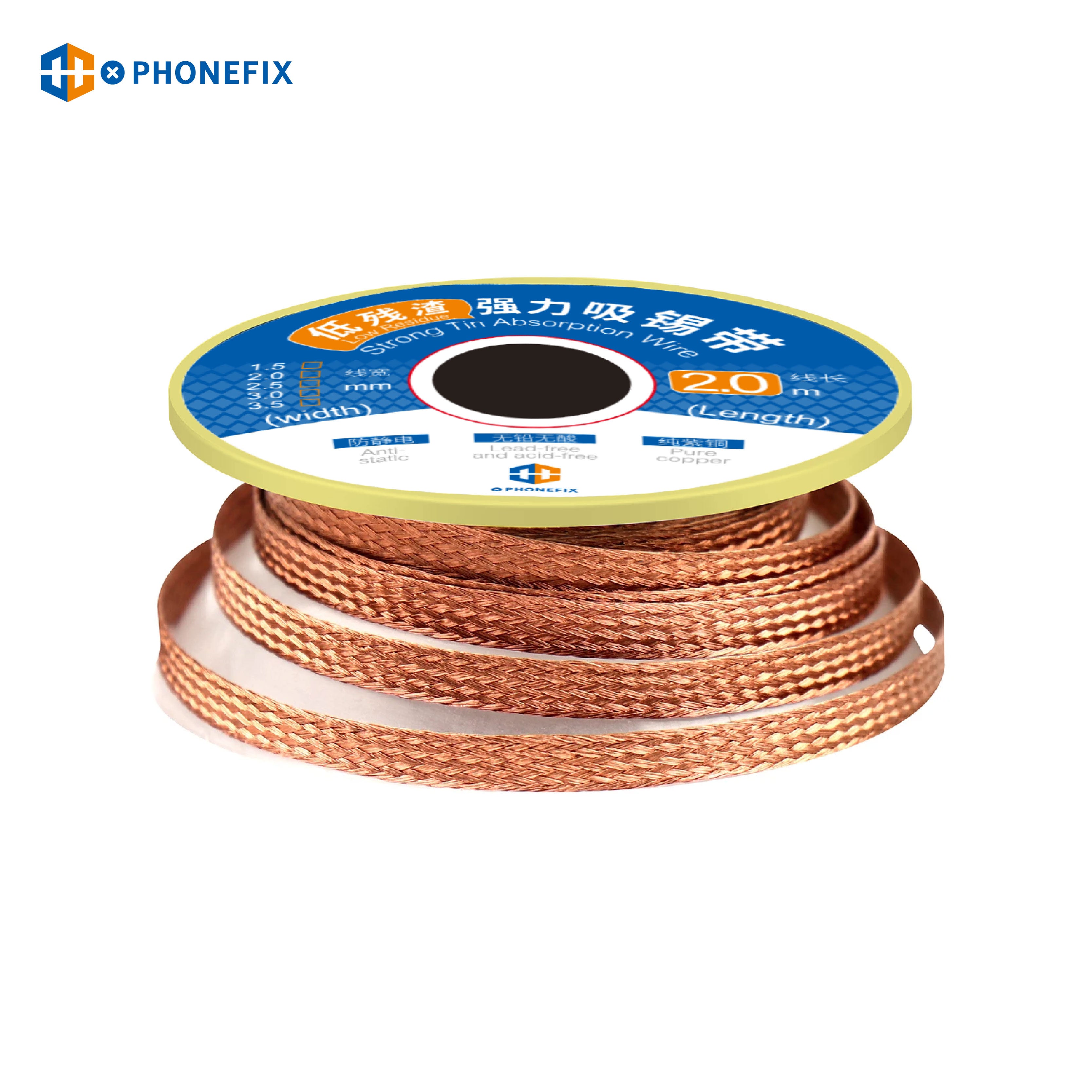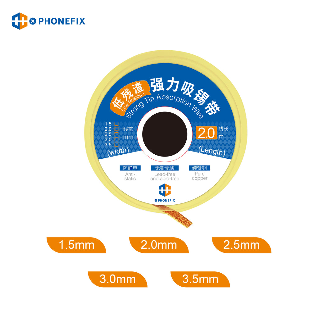 PHONEFIX low residue strong tin absorption wire soldering wicks for phone welding repair tool, phone PCB desoldering braid solder remover wicks wire phone repair tool, BGA desoldering braid wicks welding remover, desoldering braid solder wicks wire for mobile phone repair.