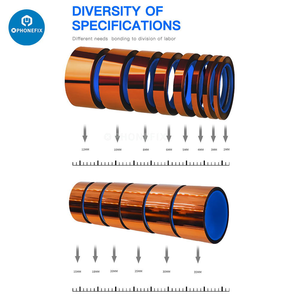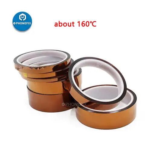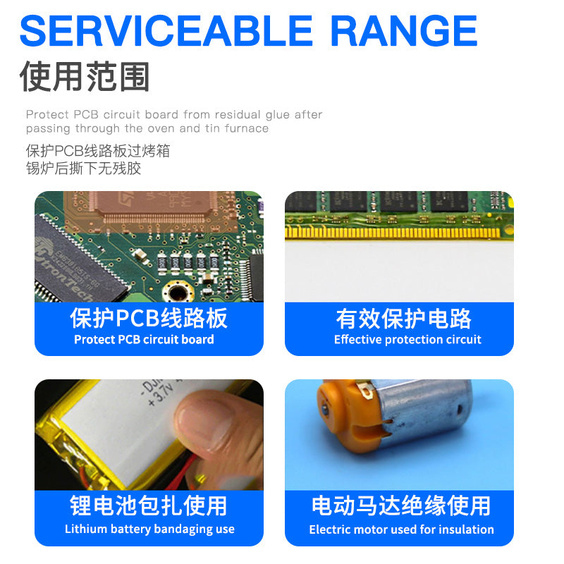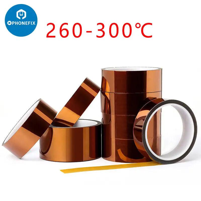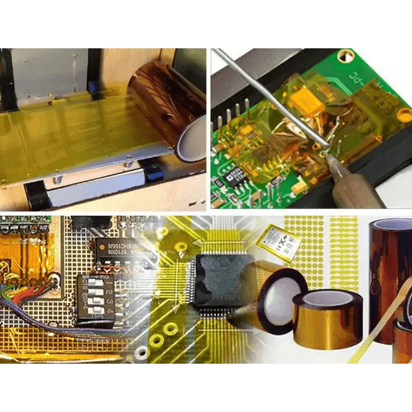 Features: 1. High temperature tape is coated high temperature silicone with base material of Polyimide Film (PI), amber. It's with good performance of adhesive, docile and obedient, solvent resist, no infiltrating solder, no glue rest, with excellent electric property, temperature resist about 160 °C-300℃. 2. High insulation and high temperature resistance tape, without rest on surface when teared. 3. Usage: Widely used for phone batteries packing, coil insulation and high temperature masking, gold finger protect when PCB SMT soldering.