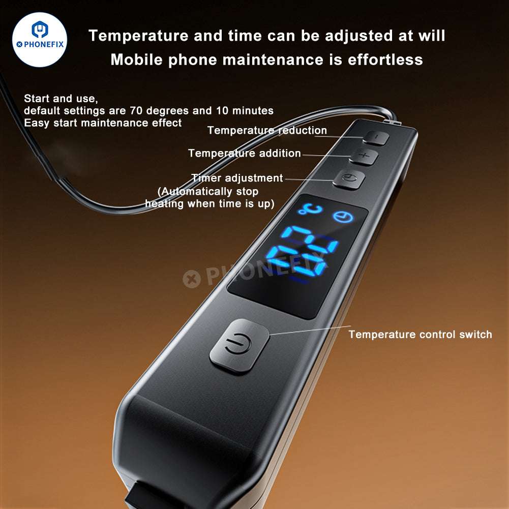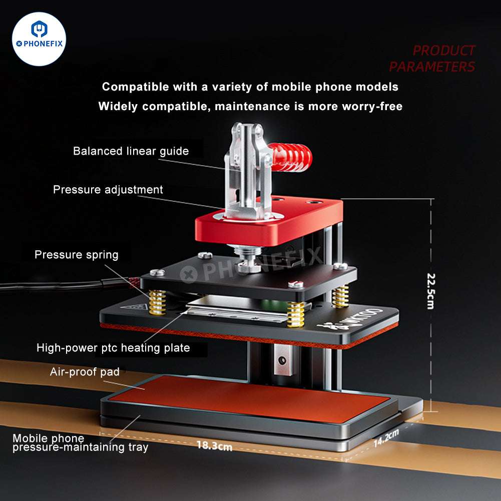 Multifunctional pressure holding machine adopt constant temperature heating, which is suitable for mobile phone screen bracket back cover pressure maintenance and airtight restoration, etc. Digital display, portable and easy operation, which is a practical mobile phone repair tool for mobile phone repair shops.