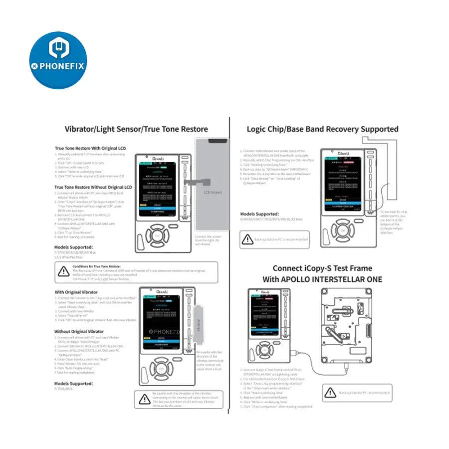 Qianli APOLLO ONE multifunctional programmer for iPhone 6-13 Pro Max battery screen true tone repair. Qianli Apollo restore detection device for Apple iPhone screen true tone restore, vibrator and battery data read write modification, light sensor repair, ect.
